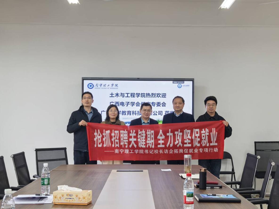 拓宽毕业生就业渠道,桂林市雁兴房地产开发有限责任公司、广西鼎鸿建筑有限责任公司、广西鼎策工程顾问有限责任公司、晟昌工程检测有限责任公司、桂林星启点投资咨询有限公司五家企业代表与学校一行展开深入交流。