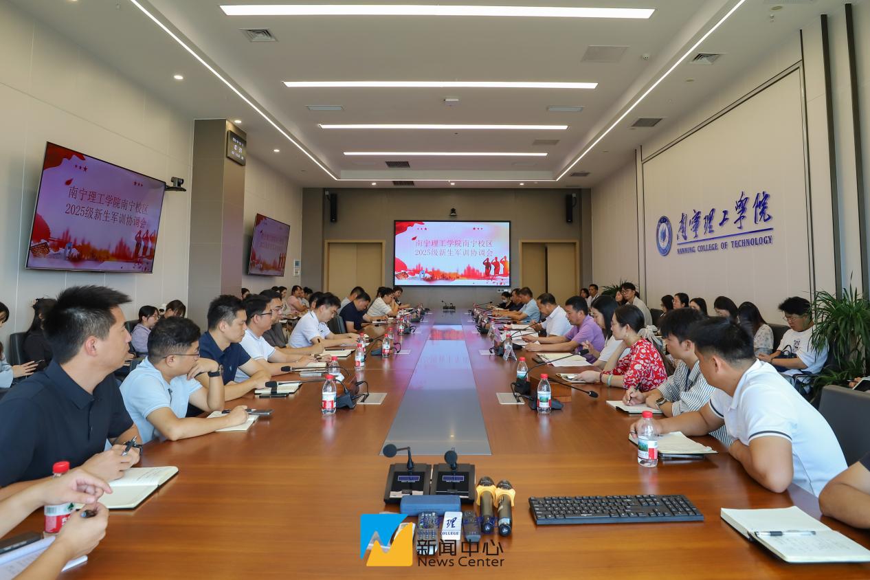 为规范新生军训组织流程、保障军训期间训练安全与服务到位,2025 年 10 月 17 日,我校南宁校区2025级新生军训工作协调和部署会在图书馆 619 会议室召开。学校党委书记、督导专员金飞,校长助理郑方兵,后勤保卫处、党政办公室、学生工作处等行政部门以及二级学院负责人,全体指导员老师参会,共同研判军训筹备难点、明确执行标准。