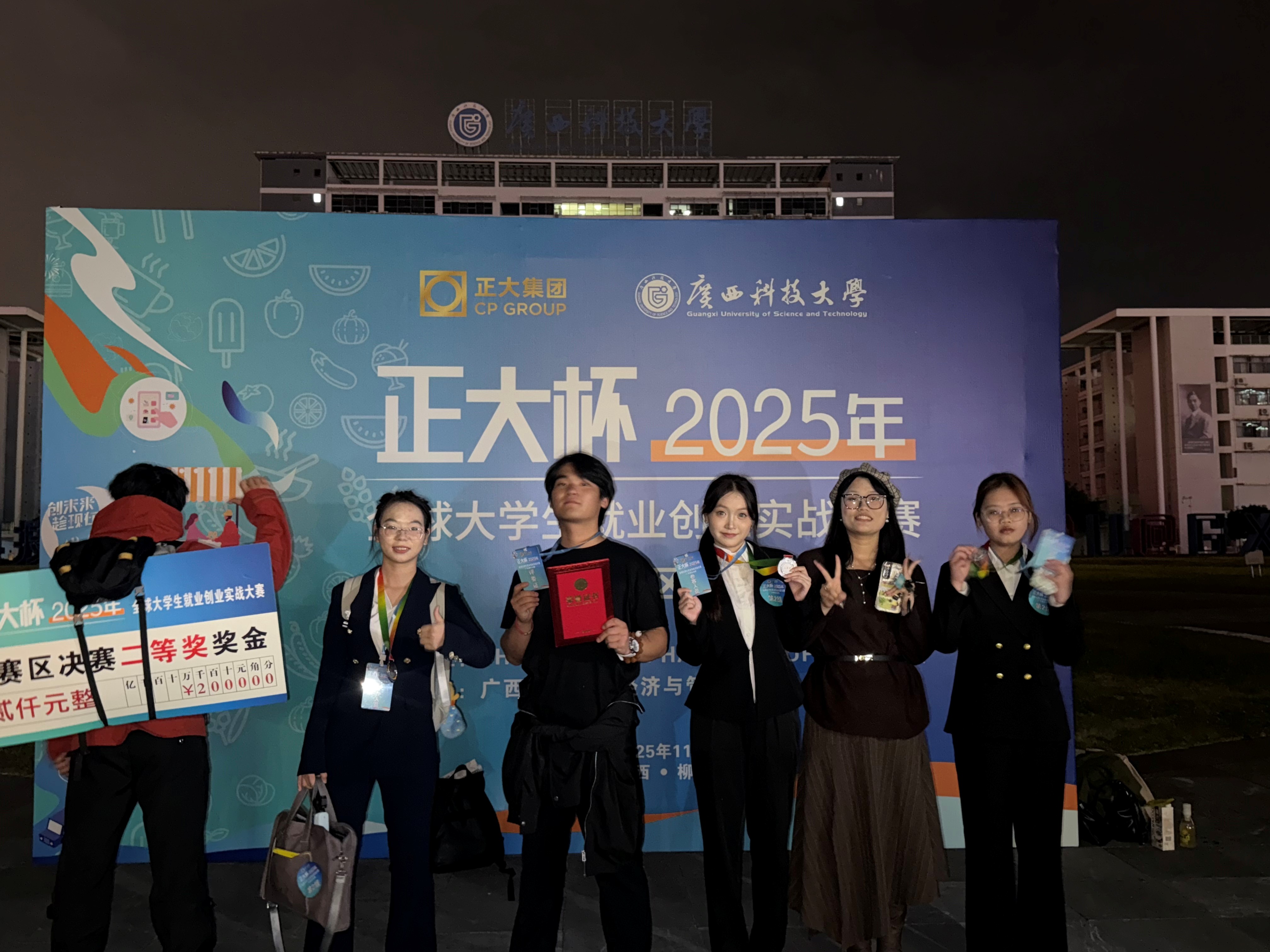 11月7日,“正大杯”2025年大学生就业创业实战大赛广西赛区总决赛在广西科技大学圆满落幕。经过激烈角逐,我校“天霸动霸tua队、张弛有肚队、超能陆战队”三支团队凭借精准的市场研判与新颖的推广策略,在实战营销赛道中脱颖而出,荣获广西赛区二等奖1项、三等奖2项的好成绩。