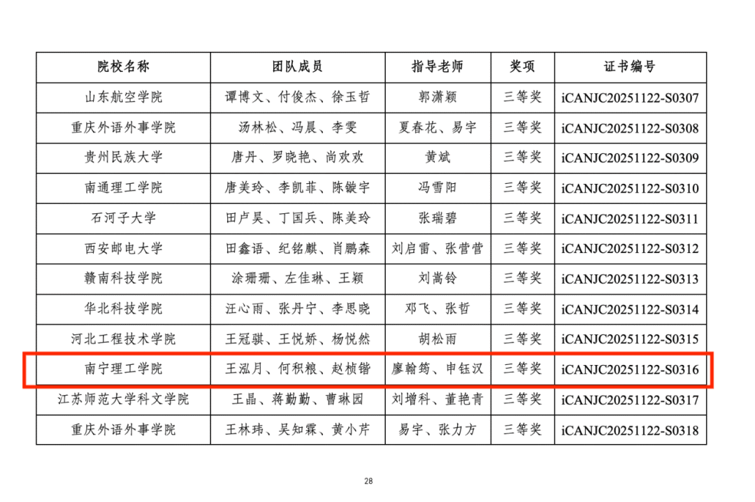 国赛+1!南宁理工学院在2025年iCAN大学生创新创业大赛“精创杯”全国数字经济决策创新挑战赛全国总决赛中斩获佳绩