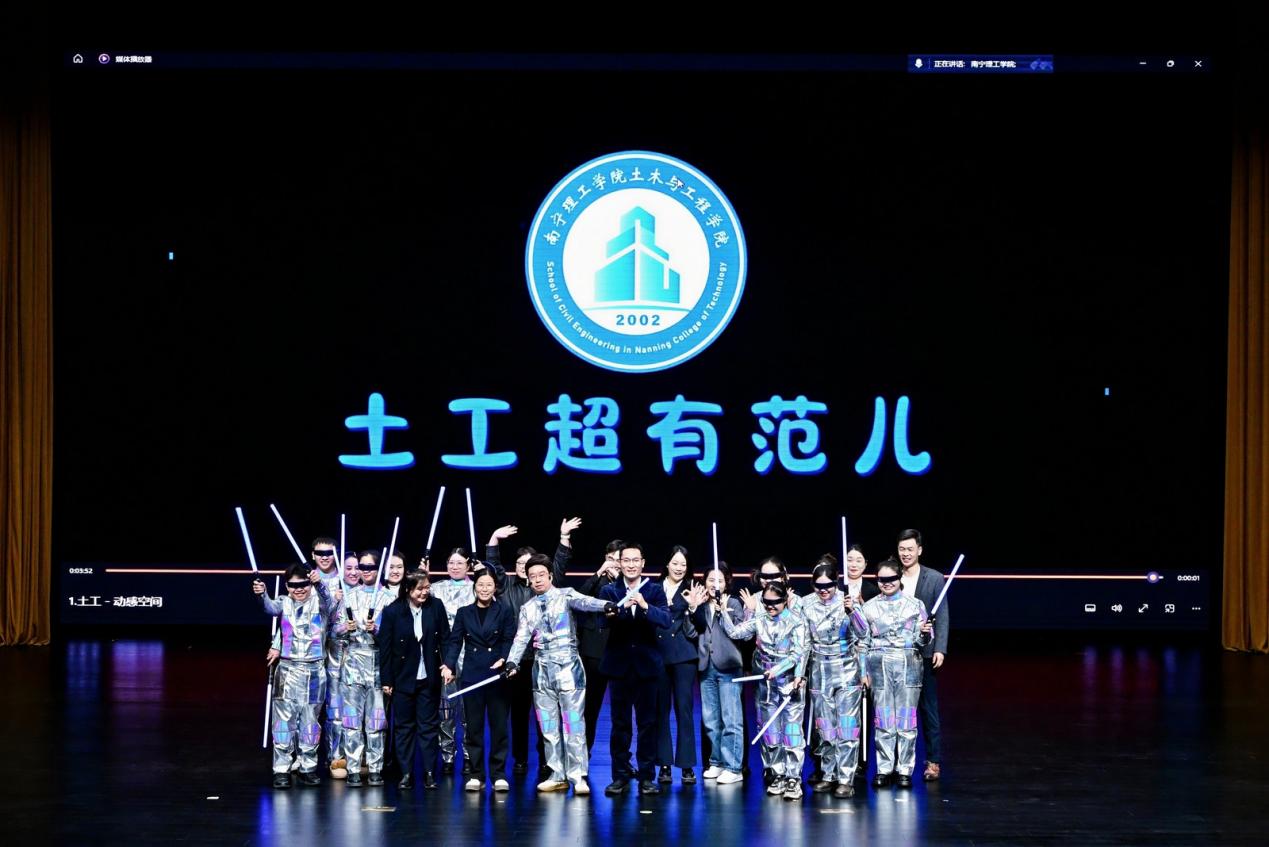 联欢会在土木与工程学院活力四射的开场舞《动感空间》中拉开帷幕,瞬间点燃了全场热情。随后,演出围绕“丰碑·回响”“灯火·人间”“乘风·启航”三大篇章徐徐展开。