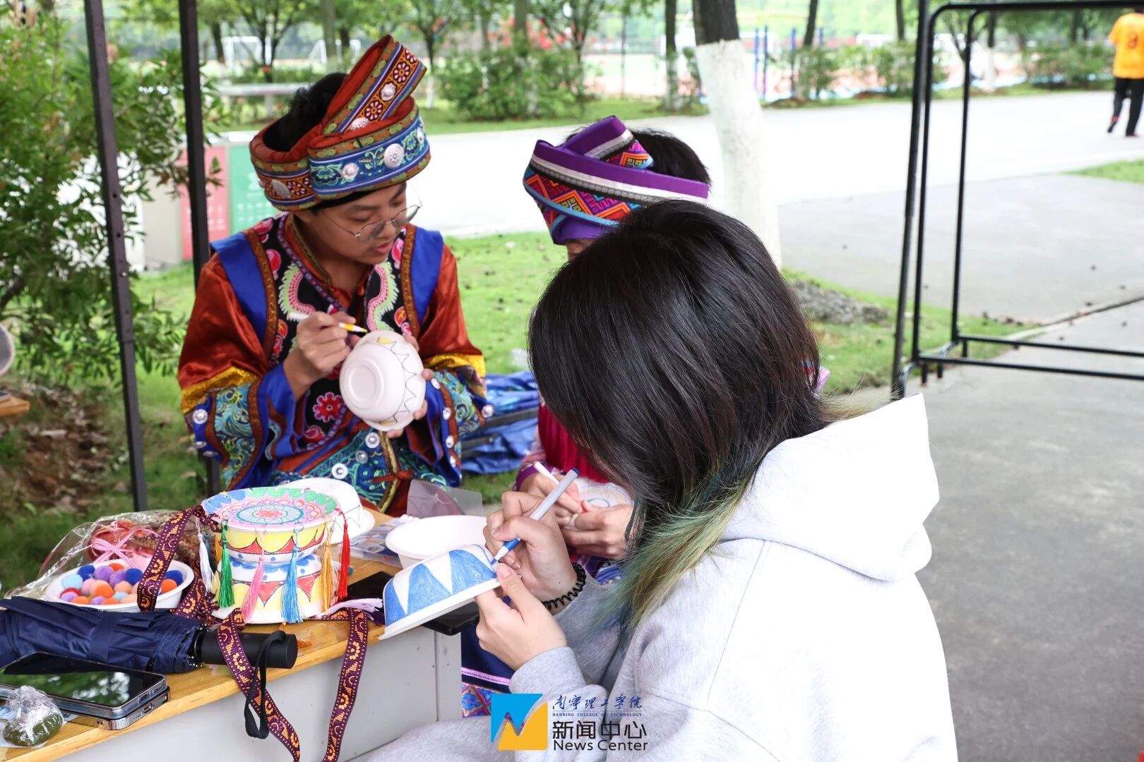 设置民族文化展示、壮乡美食手作、民族文艺展演、民俗游戏互动四大区域,通过民族作品展、彩蛋涂鸦、品鉴五色糯米饭、青团、民族歌舞、山歌对唱、投壶和抛绣球等活动,让师生沉浸式品鉴民族文化、体验民俗乐趣。