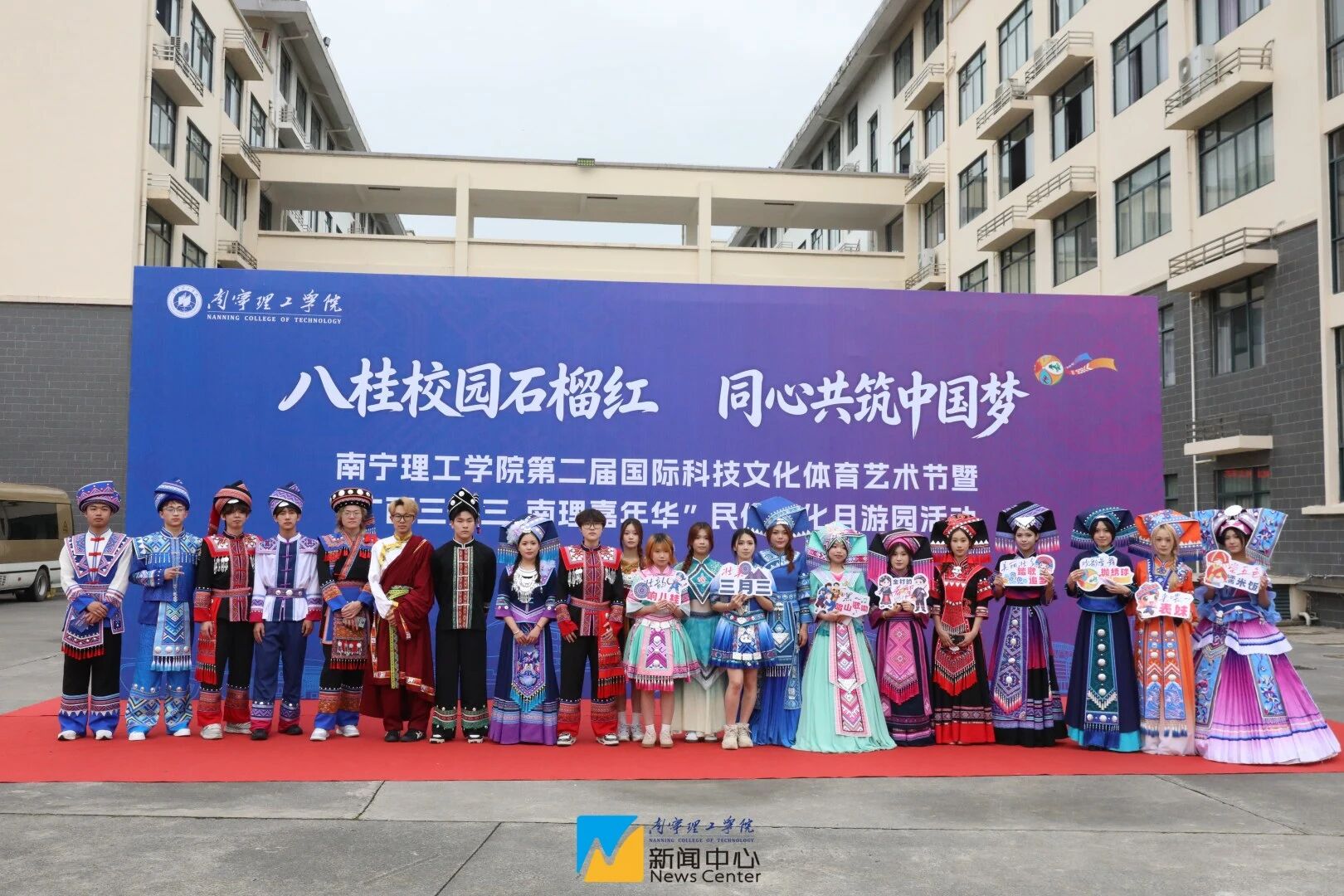 壮乡三月歌飞扬,南理校园石榴香。时值“广西三月三”传统民俗佳节,南宁理工学院第二届国际科技文化体育艺术节暨“广西三月三 南理嘉年华”民俗文化月于南宁、桂林两校区同步盛大启幕。活动以“八桂校园石榴红 同心共筑中国梦”为主题,深度融合壮乡民俗文化、民族团结教育、校园文化浸润、国际交流合作、家校校友协同、国防就业赋能等多元维度,打造沉浸式、全场景、高品质的文化盛宴,让师生在赏民俗、品美食、观展演、悟文化中感受非遗魅力、传承中华优秀传统文化,铸牢中华民族共同体意识,坚定文化自信。
