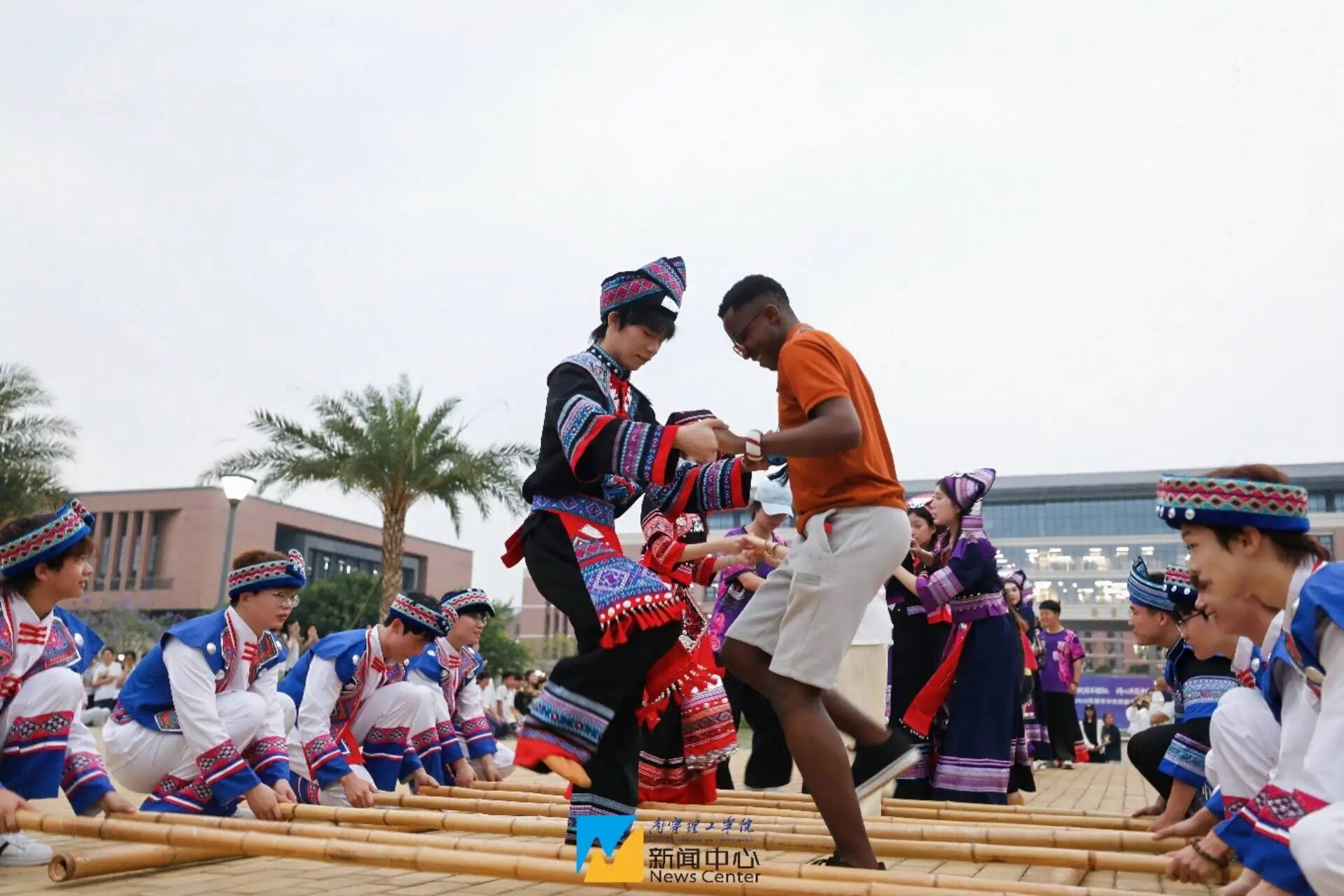 同步开展民俗文化校园巡游、千人山歌对唱、竹竿舞、非遗打铁花、民族团结篝火共舞及烟花秀,校外嘉宾和校内师生携手同欢,生动展现各民族像石榴籽紧紧相拥的团结景象,让文化认同与团结理念入脑入心,将活动氛围推向高潮。