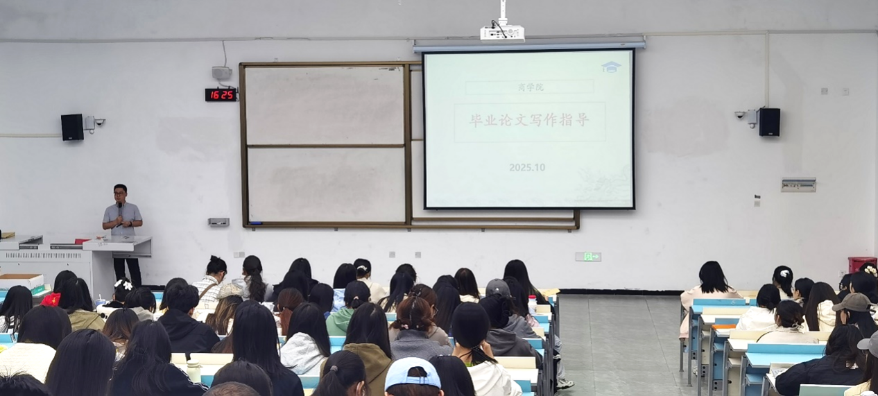 随后,商学院卢亚和副教授进行毕业论文写作指导。针对财务管理专业特点,他从选题、开题、撰写、查重、答辩五大环节展开说明。他指出:第一,选题需兼具学术价值与实践意义,题目应聚焦具体企业,避免空泛化;第二,开题报告需扎实梳理文献,明确研究背景、目的与方法,尤其要注重结合宏观经济情况与行业数据;第三,撰写过程中应强化数据分析能力,合理运用财务分析方法,确保论证严谨;第四,学生需在规定时间节点完成论文,查重环节将严格执行学校 “双检测” 制度,通过维普查重与AIGC检测双重审核;第五,答辩工作需按照学校要求如期完成。他特别提醒,学生需与指导教师建立定期沟通机制,主动反馈进展、解决难题,确保论文质量。卢亚和副教授还结合往届指导经验分享了论文写作实用技巧,针对常见问题,他提醒学生规避格式不规范、数据论证脱节、参考文献标注混乱等 “高频错误”,鼓励学生通过学校图书馆资源、专业数据库提升文献检索与研究分析能力。