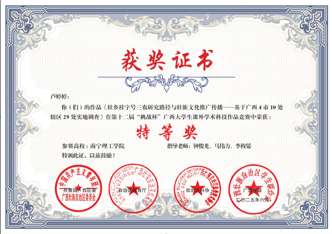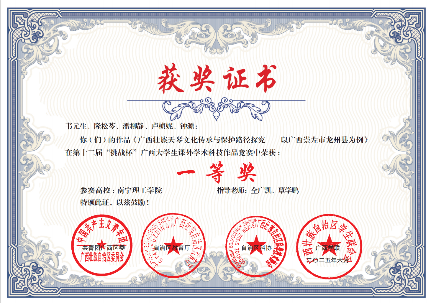 图19.第十二届“挑战杯”广西大学生课外学术科技作品竞赛一等奖