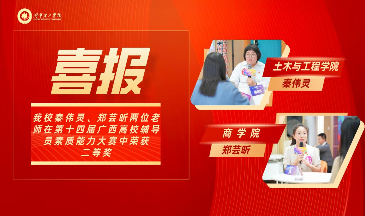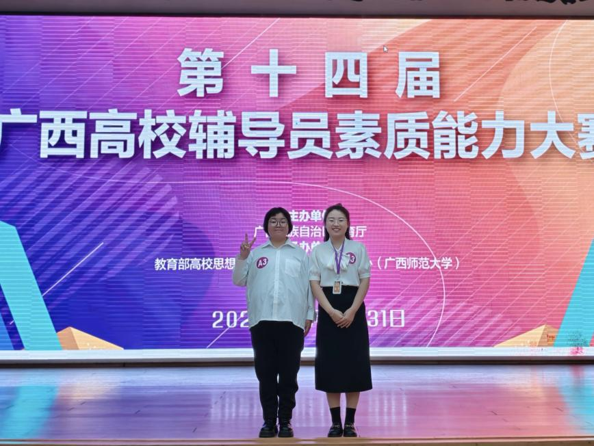 10月29日—31日,由广西壮族自治区教育厅主办、教育部高校思想政治工作队伍培训研修中心(广西师范大学)承办的第十四届广西高校辅导员素质能力大赛在桂林圆满举行。我校选派参赛的秦伟灵、郑芸昕两位老师凭借扎实的理论功底、过硬的职业能力和出色的现场发挥,在比赛中表现优异,均斩获此次大赛二等奖。