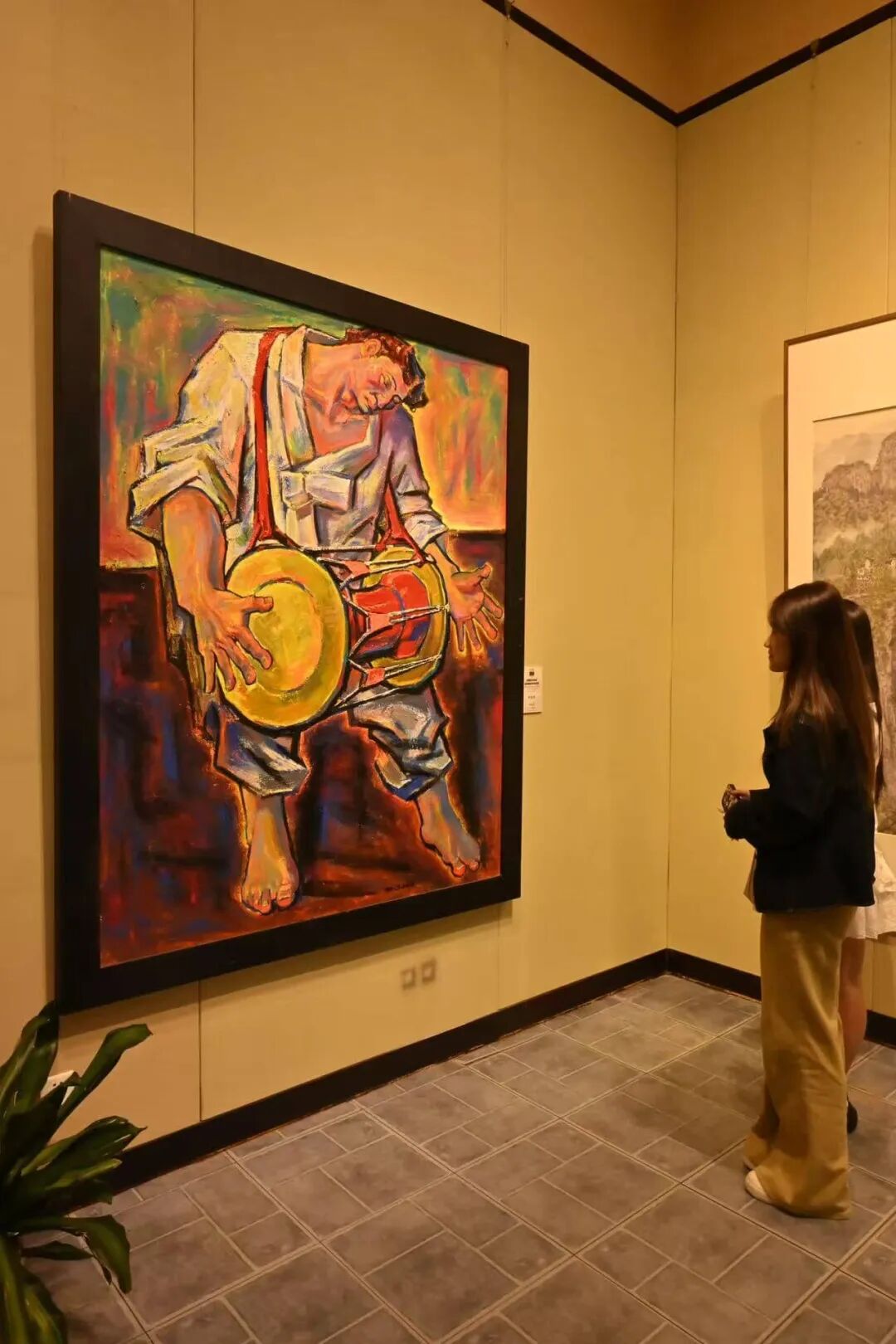 本次研学聚焦“学院精神——全国美术院校民族题材作品巡展”,一幅幅兼具民族底蕴与国际视野的艺术精品,让师生们沉浸式感受古今中外文化的碰撞与交融。参观现场,师生围绕“民族元素国际化表达”“传统与现代融合”等核心话题展开深度研讨,思维的火花在艺术赏析中不断迸发。