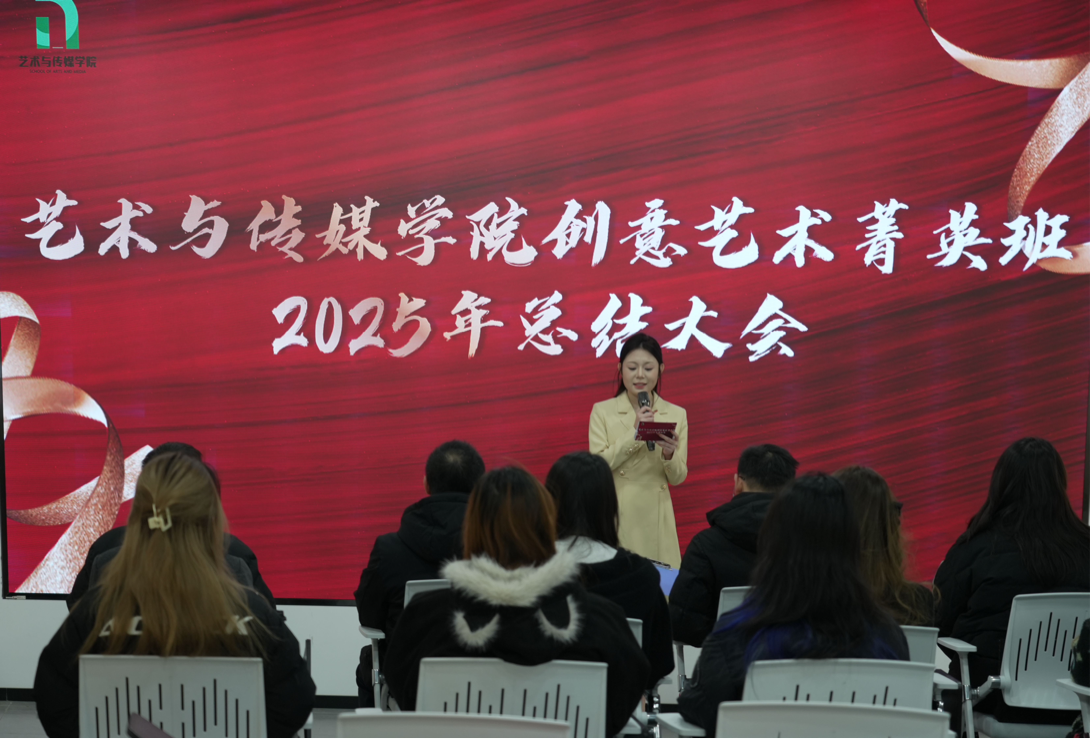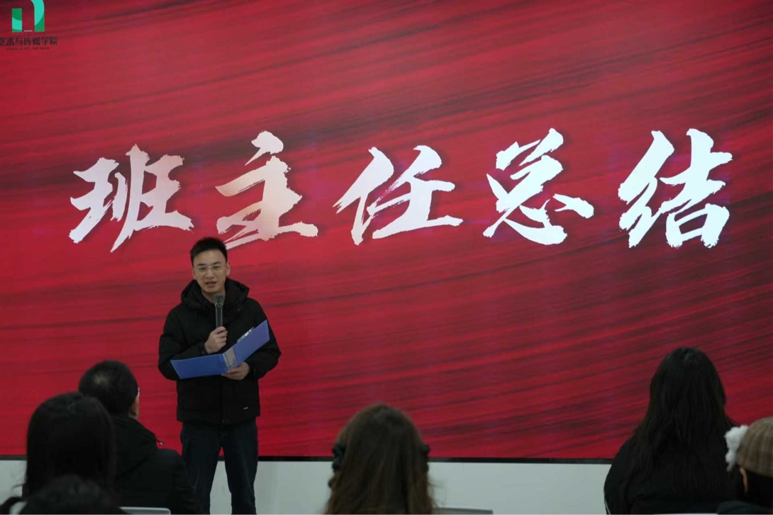 菁英班班主任刘武钢随后进行了学期总结。回望共同走过的旅程,盘点那些在专业课堂、创作工坊、实践项目中闪现的灵感与汗水,成长的足迹清晰可见。总结中既有对过往收获的肯定,也包含着对未来的展望,言语间充满了为师者的欣慰与期盼。