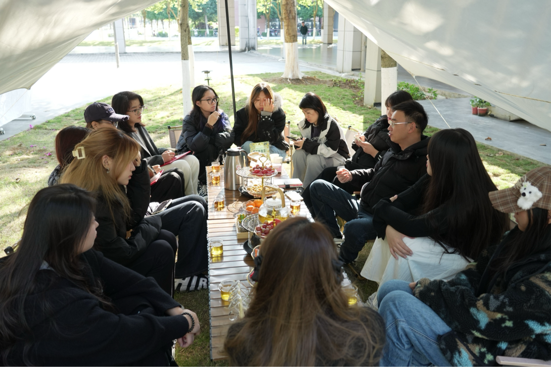 活动自由交流环节。师生们围炉而坐,精致茶点与鲜果为伴。大家卸下拘谨,就学业困惑、创作心得、职业规划、生活感悟等话题畅所欲言。思想的火花在轻松的对话中碰撞,师长们的经验分享如涓涓细流,浸润心田。这场不拘形式的交流,真正实现了 “话成长” 与 “向未来” 的初衷。