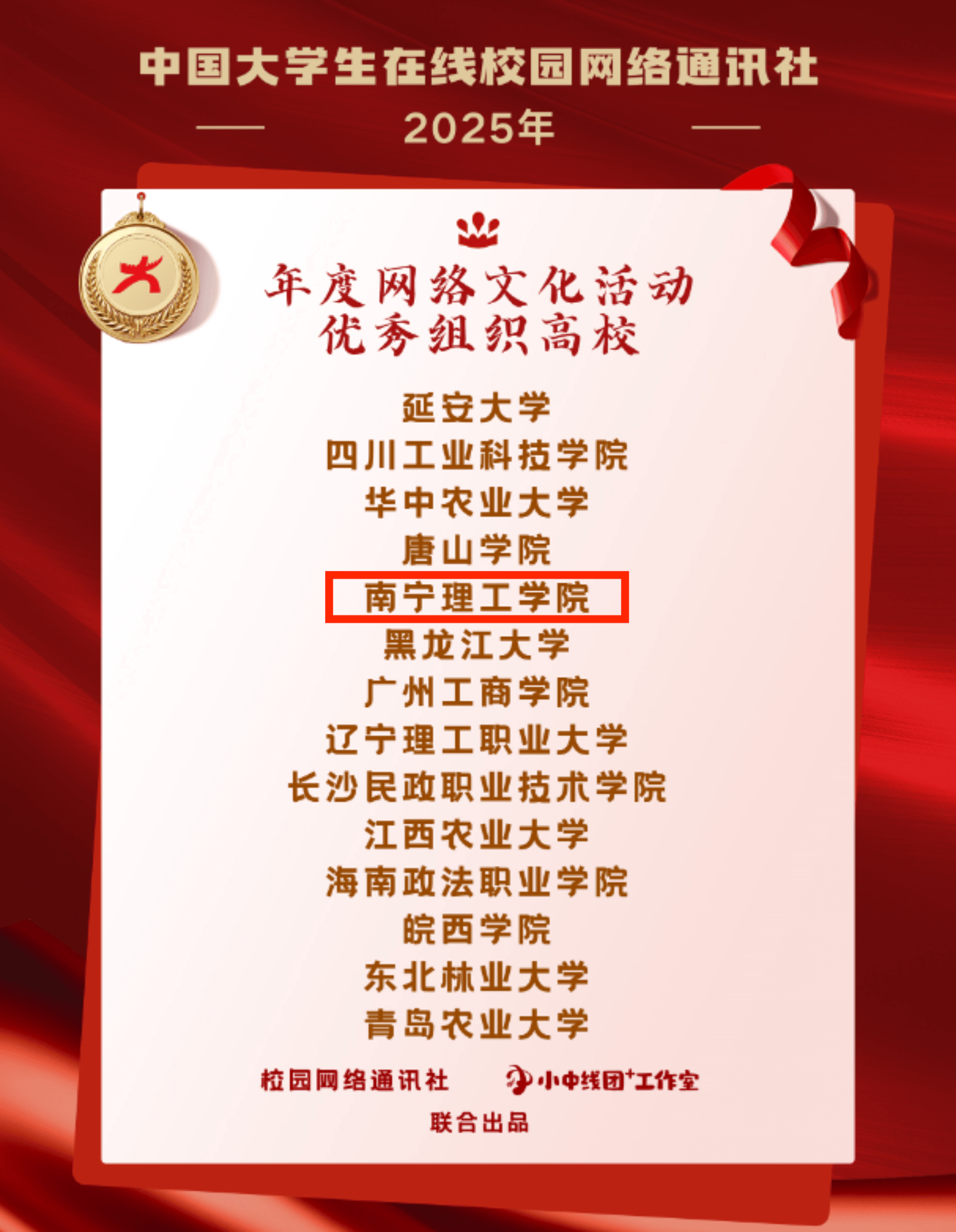 南宁理工学院荣获2025年中国大学生在线“年度校网通站”等6项荣誉