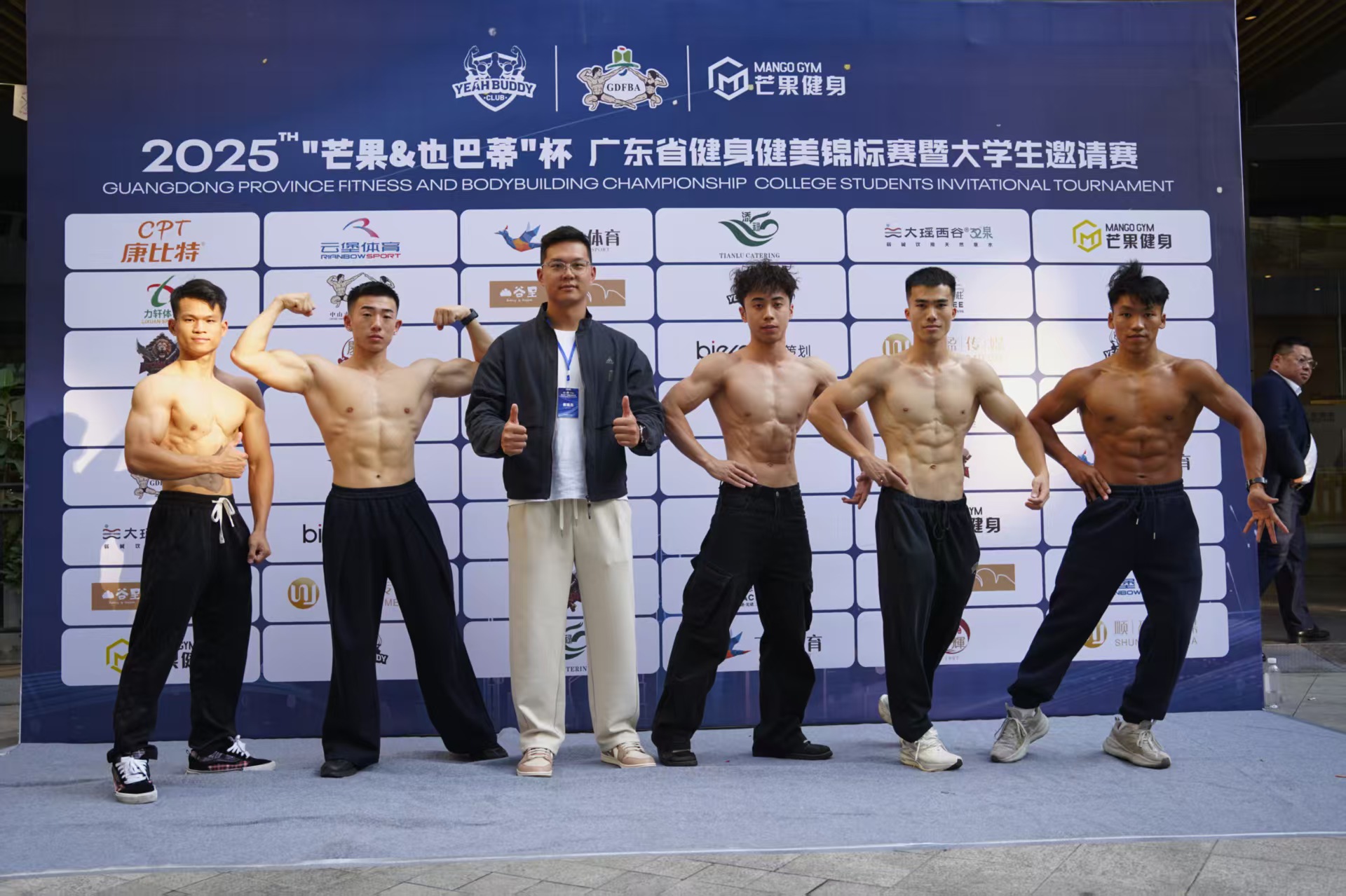 近日,2025年广东省健身健美锦标赛暨大学生邀请赛在广州圆满落幕。在曹宇航老师的带领下5名体育专业学生参加比赛,凭借卓越的肌肉形态、精湛的舞台表现和科学的竞技状态,在强手如林的赛场中脱颖而出,共斩获高校男子古典健美171cm(含)以下组第二、三名,高校男子传统健美组第四名、高校男子健体A组组第六名等多项优异成绩,充分展现了学校在应用型体育人才培养,特别是在健身健美专项教学与实践领域的扎实成果。此次比赛的参加得到了南宁理工学院新活力体育产业学院全程支持。