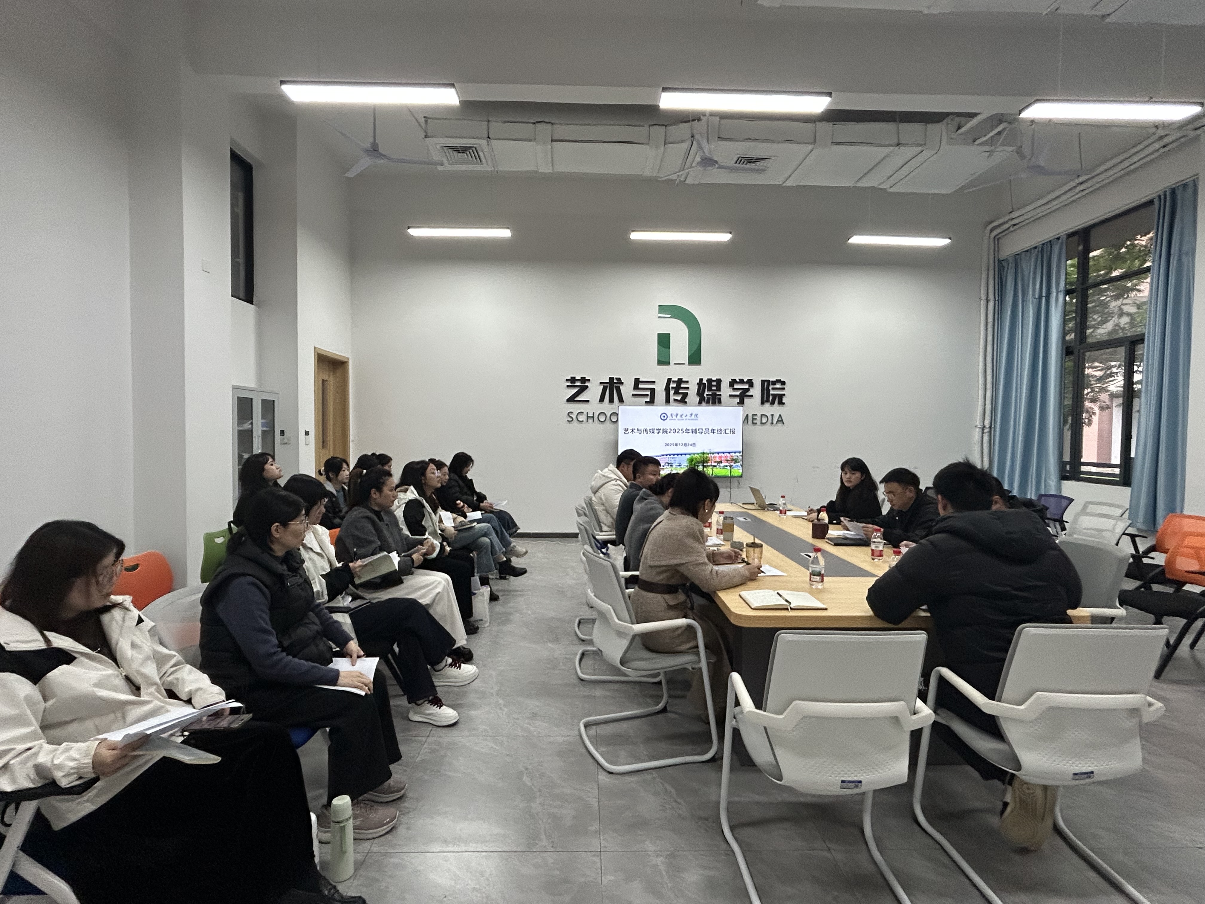 为全面总结年度学生工作成效,凝聚育人合力,12月24日,南宁理工学院艺术与传媒学院2025年度辅导员年终述职评议会在学院会议室召开。会议由辅导员温小翠主持,学院党总支书记刘武钢出席会议,全体辅导员参会。