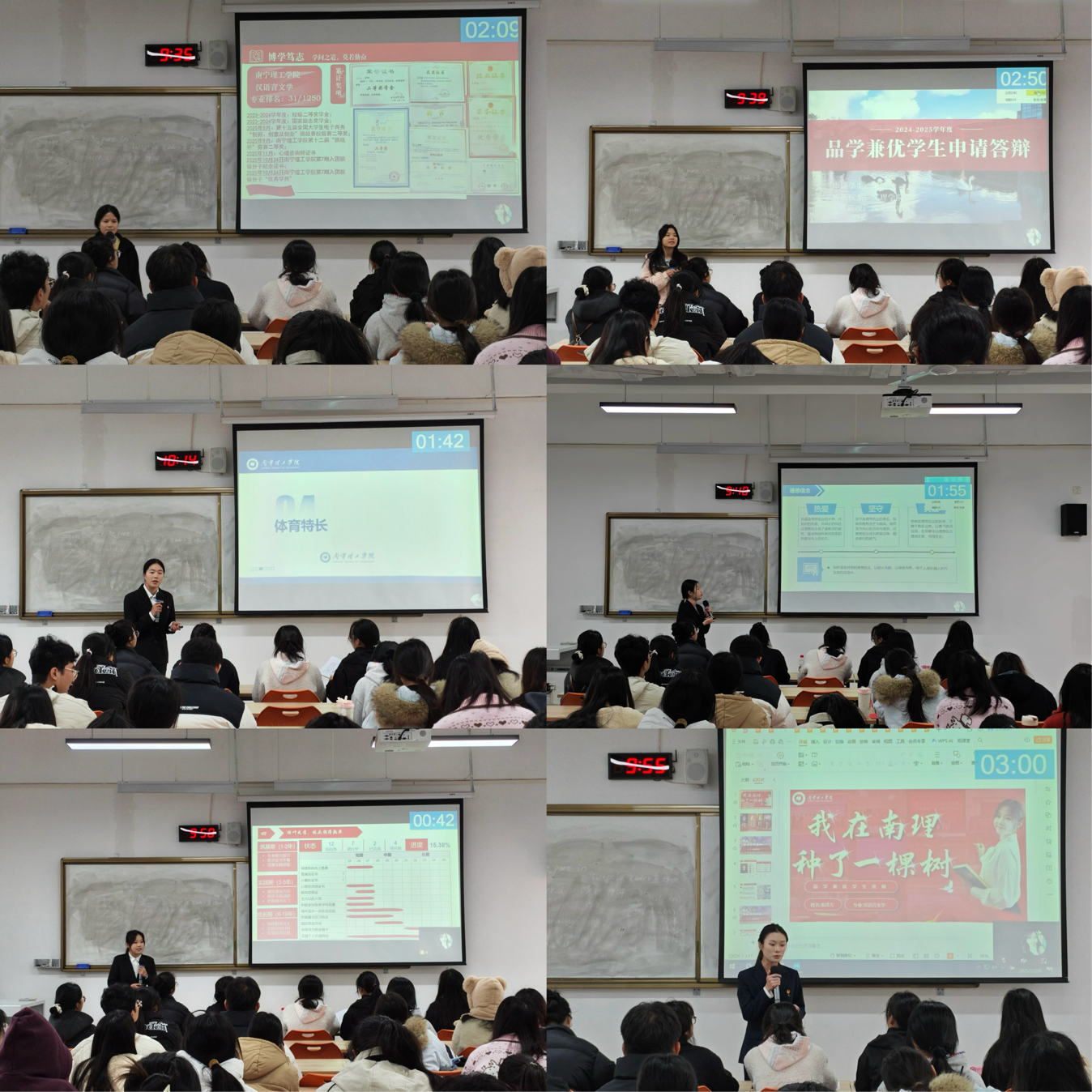 经过学生自主申请、辅导员审核、工作小组材料复核,最终确认参与答辩名单。答辩环节分为个人陈述与评委提问两部分,选手们结合自身经历,从思想引领、学业成绩、科研创新、社会实践、志愿服务等多个维度展开三分钟阐述,有的选手以优异的专业绩点为切入点,分享自己平衡课堂学习与课后科研的高效方法,展示参与校级、省级科研项目的研究成果;有的选手聚焦社会实践经历,讲述自己带领团队深入社区开展支教服务、参与乡村振兴调研的暖心故事,展现新时代青年的责任与担当,每一个细节都彰显着文理学子锐意进取的精神风貌。