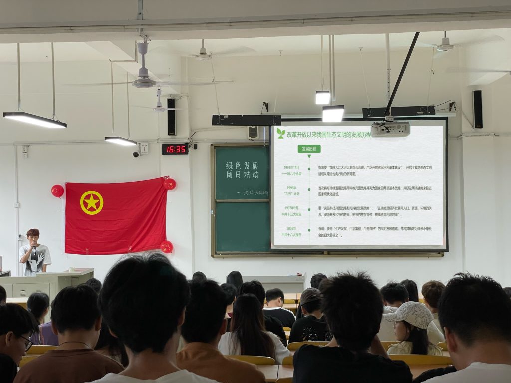 6月2日,在庄严的团歌声中,团日活动拉开序幕。团支书邓靖齐概述了绿色发展的基本知识及其设立的背景,详细阐释了“绿水青山就是金山银山”的深刻含义。这句广为传播、深入人心的名言,不仅在中国人民思想上烙下深深的印记,更在实际行动中得到生动的体现,带来了实实在在的民生福祉。“绿水青山”指的是生态环境,“金山银山”说的是经济发展。团支书邓靖齐接着带领同学们学习绿水青山的实践政策,观看了习近平总书记关于对未来寄托的视频。学习后,同学们更加了解绿色发展的重要性。在互动问问答环节,同学们积极参与,回答准确,同学们都将绿色发展记入了心中。最后团支书邓靖齐进行了总结,作为国家的一份子,我们要积极践行绿色生活理念,通过改变自己的消费习惯和行为,为创造一个更美好、更可持续的未来贡献力量。