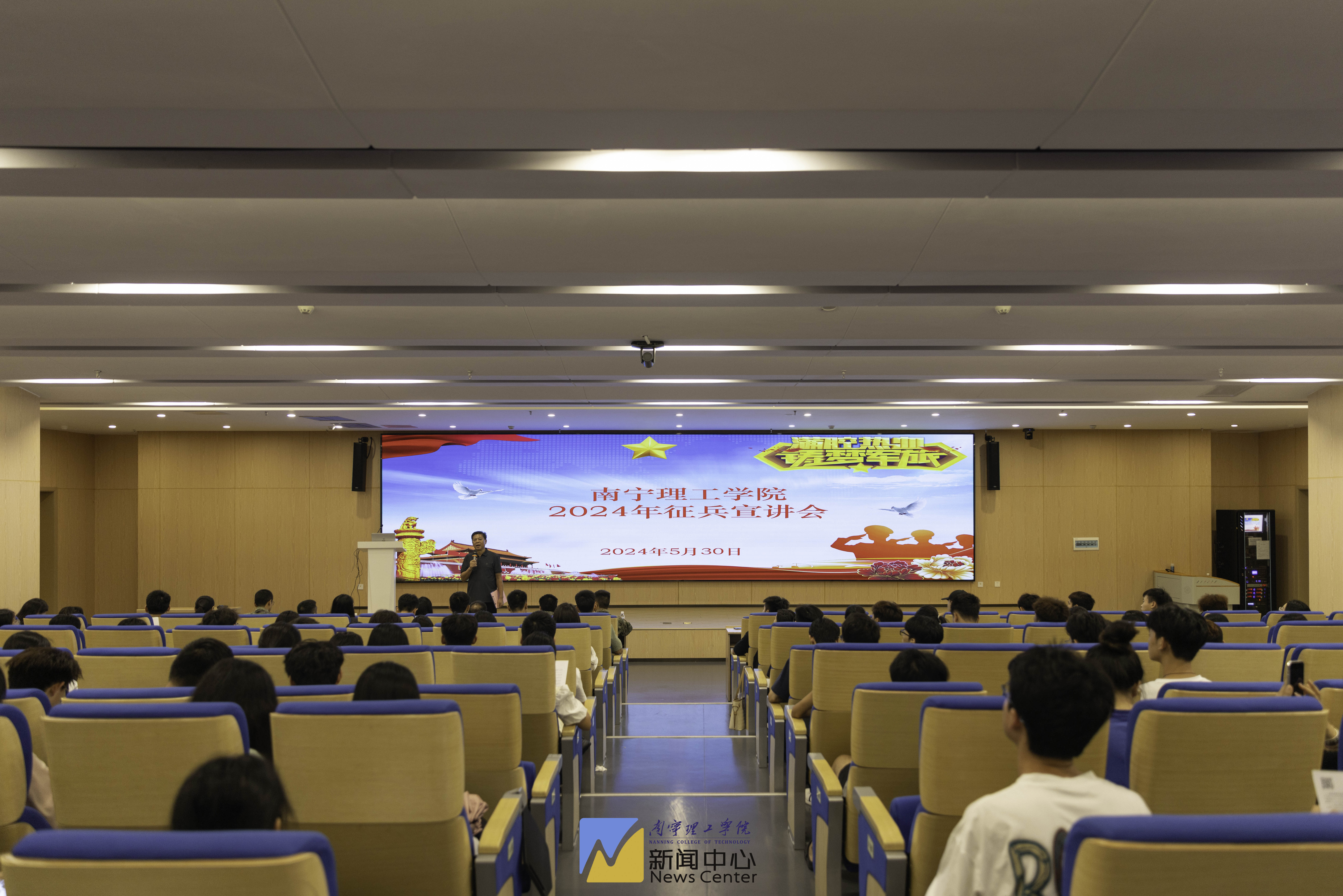 5月30日下午,南宁理工学院南宁东盟校区邀请武鸣区征兵办来校开展秋季征兵宣讲会。宣讲会由后勤保卫处处长助理王胜主持。