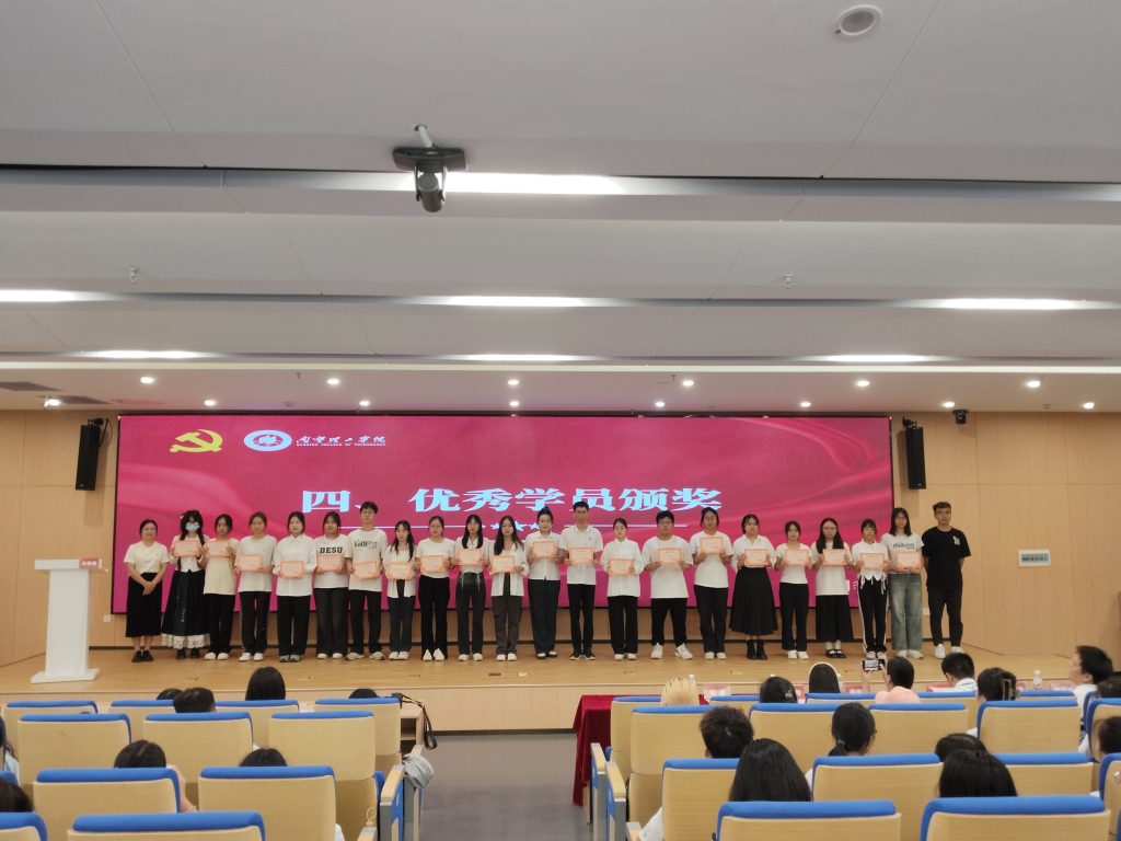 典礼在雄壮的国歌声中拉开帷幕。由党建组织员周秀欣同志宣读《关于“优秀学员”的表彰决定》,对本次入党积极分子培训班期间学习态度认真、表现突出、成绩优良的先进分子表示表彰。陈禹含同学作为优秀学员代表发言,她代表第三十八期全体入党积极分子向学院领导老师表示感谢,鼓励大家不断提高思想水平,将全心全意为人民服务的宗旨融入到自己的学习生活中,以实际行动争取早日入党。