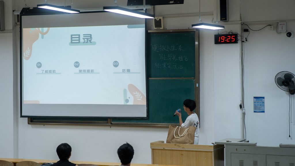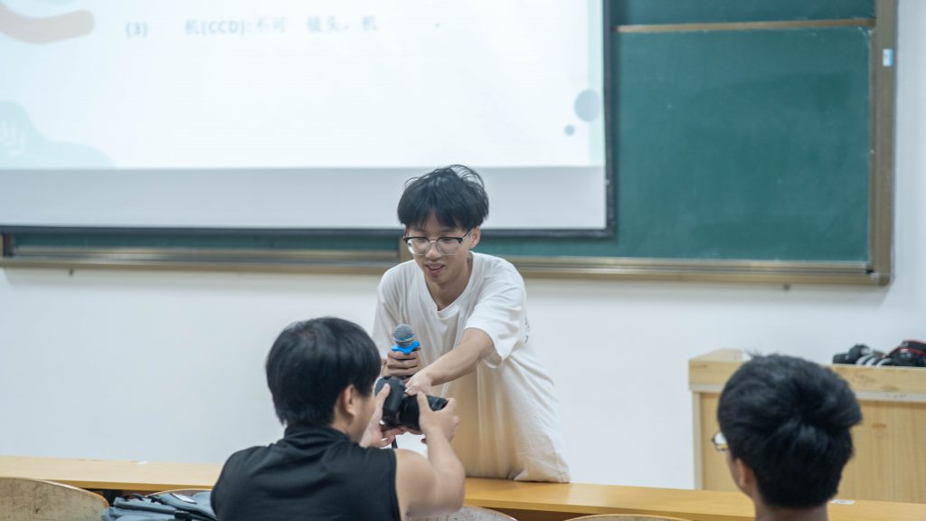 课上,梁苏国锦从摄影基础的角度,向大家普及摄影设备的结构、原理等基本知识,详细介绍了摄影三要素,光圈、快门、ISO等功能和使用技巧;对不同场景的拍摄技巧,如拍摄会场的构图、拍摄角度的选取,接着,讲解了相机镜头的分类以及焦段的使用范围。最后,梁学长分享了修图技巧,并在电脑上演示Ps、Lr软件的基础修图技巧。并鼓励同学们在摄影工作中多思考、多实践,不断丰富拍摄思维,提升审美鉴赏能力,呈现更好的摄影效果。