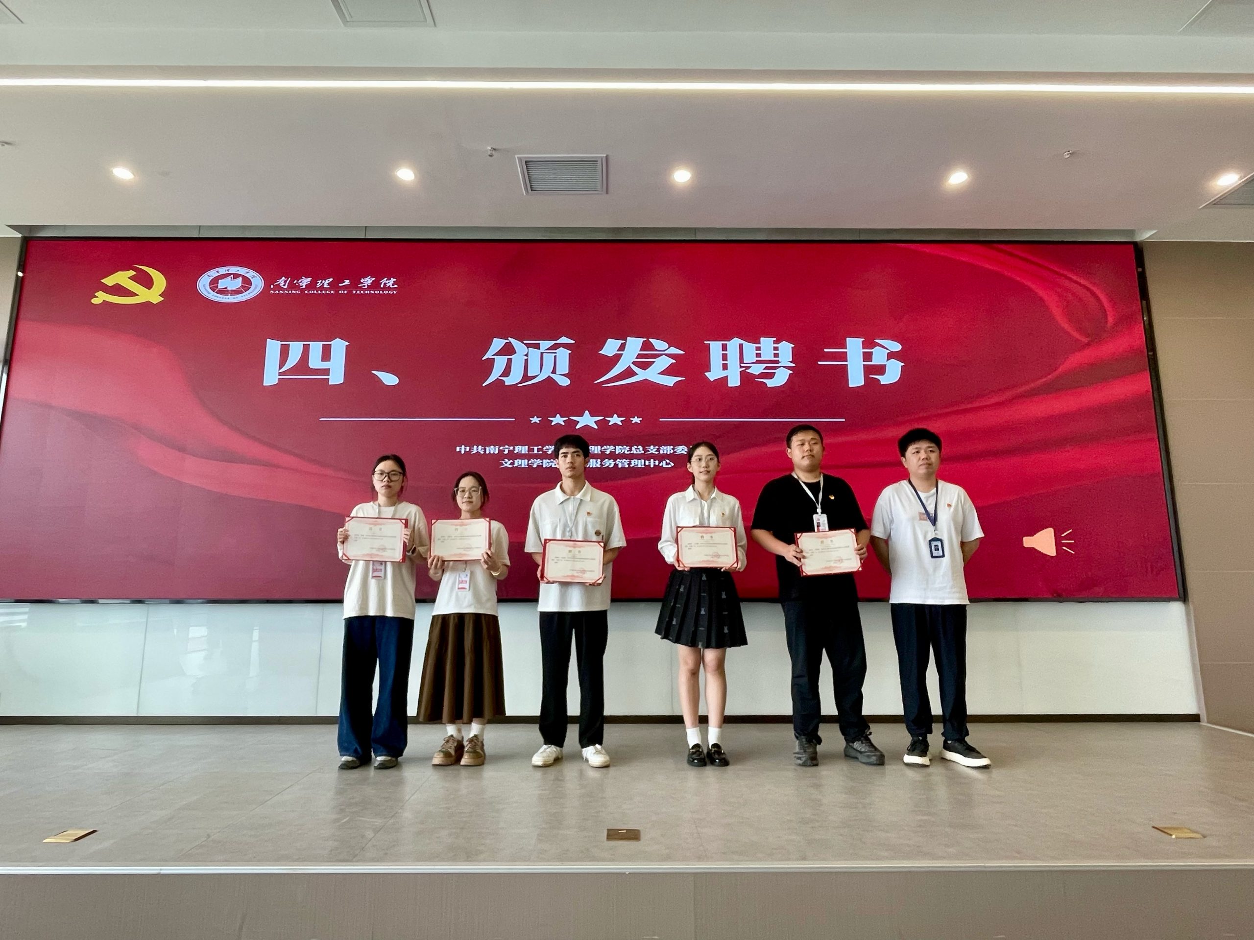 (文理学院分团委书记覃蓝天为第一届干部颁发聘书)