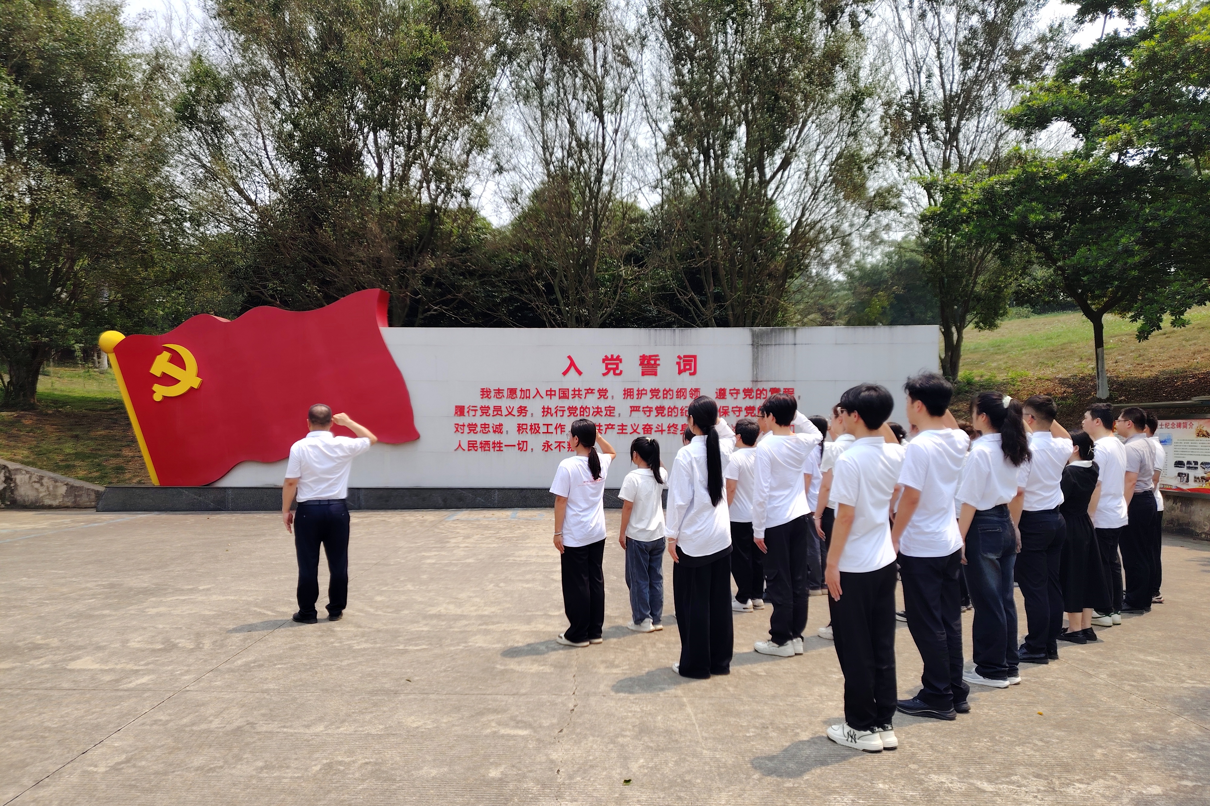 活动最后,参加祭英烈活动的全体师生党员面向党旗,重温入党誓词。