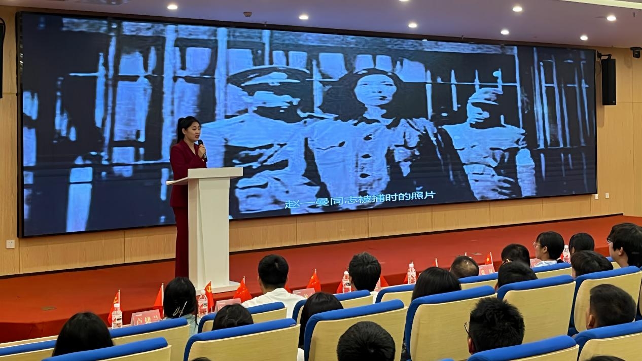 最后,宣讲环节正式拉开帷幕。宣讲团代表赵薇、侯宇鑫给大家分别带来了英雄故事《抗日女英雄——赵一曼》和时代楷模《点亮万家的蓝领工匠——张黎明》。两位同学生动而深刻的宣讲,让大家都沉浸在了赵一曼、张黎明同志的故事中,感受着他们不屈不挠、艰苦奋斗的辉煌事迹。