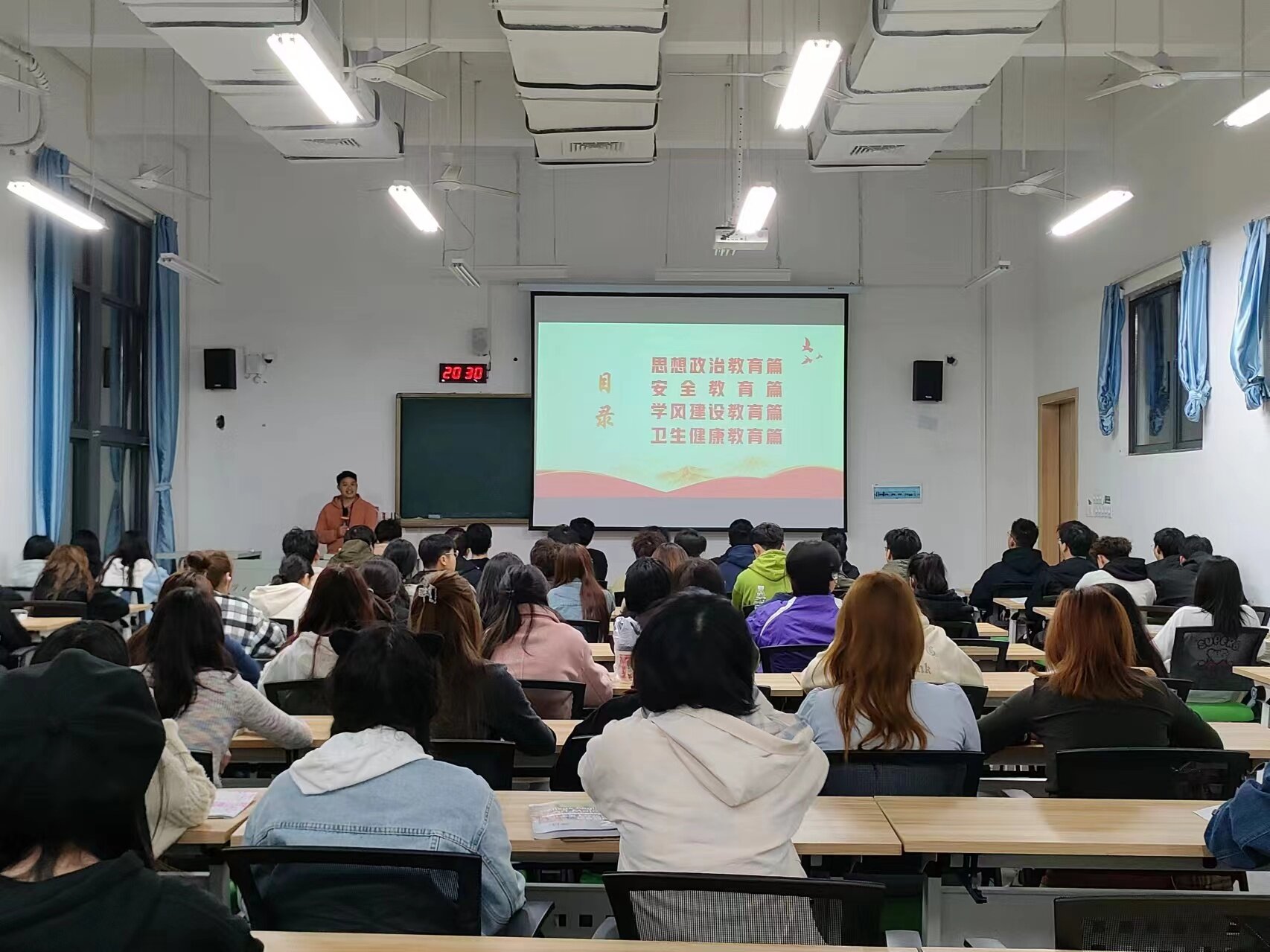近日,我院积极开展2024年春季学期“开学第一课”专题教育活动,各年级辅导员围绕“学生思想政治教育、加强学风建设教育、巩固校园安全稳定、增强学生健康意识”四个篇章开展主题班会。此次专题教育活动的开展,不仅使学生在新学期树立了新目标,更是为接下来良好学风的建设奠定基础。