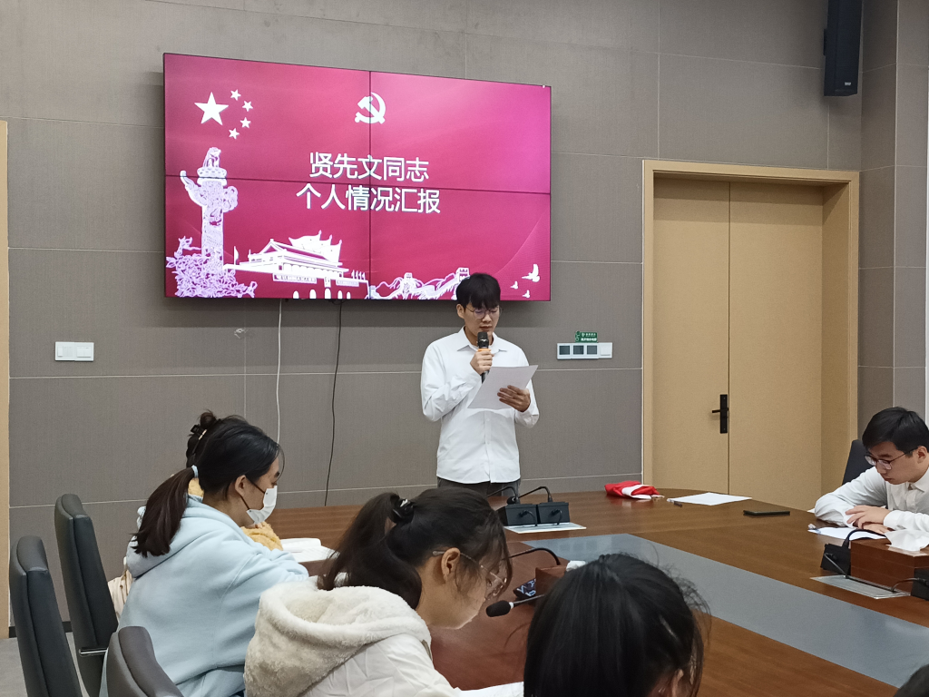 会上,发展对象依次宣读了自己的《入党志愿书》,并向党组织汇报了自身对党的认识、入党动机、个人经历以及在校表现等;入党介绍人向大会介绍了其主要政治思想、学习、工作、生活等情况。支委同志向大会报告政治审查情况,与会党员对发展对象是否符合党员条件发表了意见。大会认为,贤先文等3名同志基本符合党员条件,经与会正式党员投票表决,大会一致同意接收3名同志成为中共预备党员。