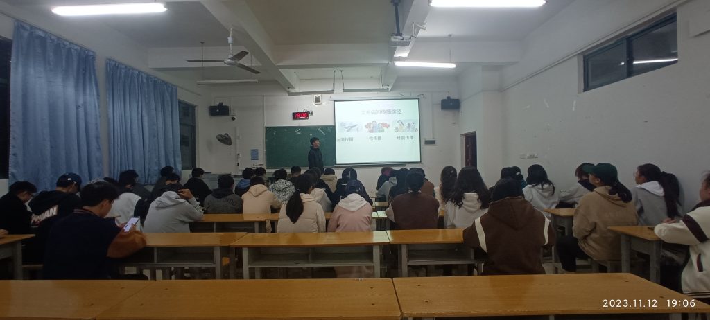 班全体成员在2023年11月12日在1114教室开展了防艾滋病的主题班会。