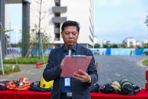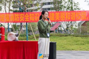 后勤事务部黎秋妙老师宣读消防安全倡议书,明确学校消防安全管理要求,动员全体师生员工遵守学校消防管理规定,自觉维护学校安全秩序。