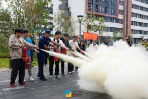 为切实提高师生员工对消防知识的认知和实操能力,我们还组织学生代表试穿消防服,正确使用消防器材和灭火器等训练,通过训练使大家进一步提升了消防安全意识,达到了训练目的。