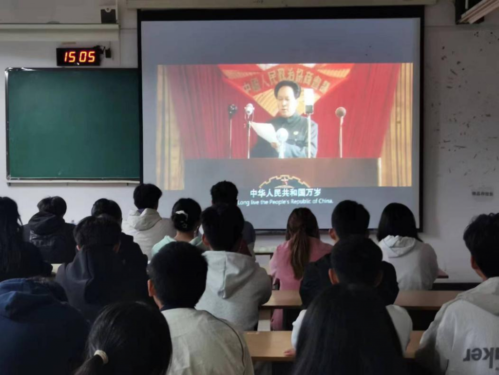 同学们在观看影片《建国大业》