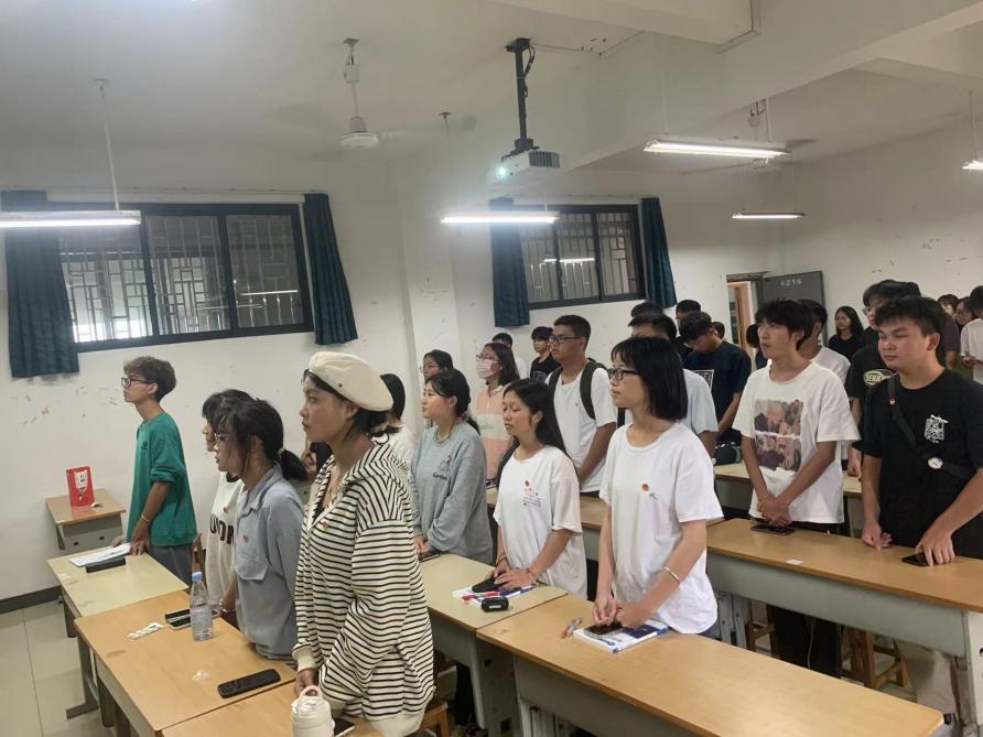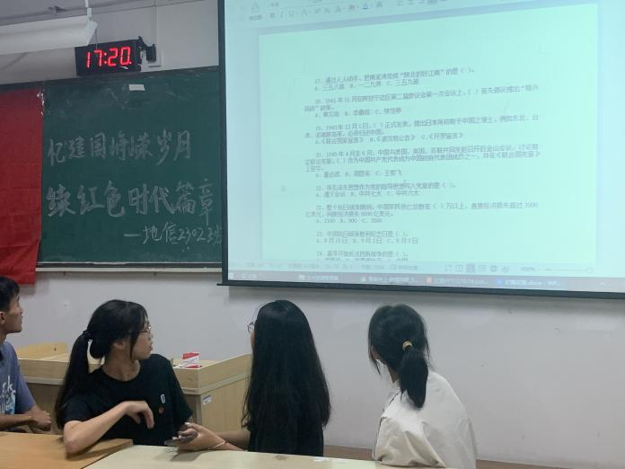 在全体同学庄严齐唱的团歌声中,活动正式开始。团支书讲解本次团日活动的主题以及流程,为大家分享了建国过程中,革命先辈所做出的努力。随后,全体同学观看学习了“中国共产党的长征路”和“新时代青年的热血”视频,大家在视频中更深入了解那时峥嵘岁月的艰难,更深入了解和平时代的来之不易。在最后的红色问答和互动游戏过程中,同学们积极参与,认真投入。部分同学发出感慨:当代青年应自强不息,努力奋进,为国为民族为社会贡献自己的力量