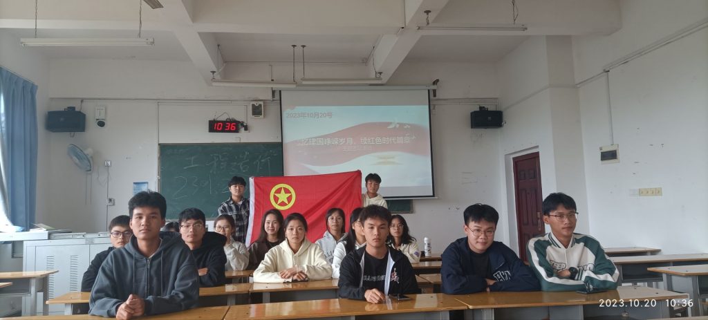 2023年10月20日,工程造价2301班团支部于南宁理工学院1218教室开展10月份团员活动。本次活动分为四个部分,活动主题为“忆建国峥嵘岁月,续红色时代篇章”。