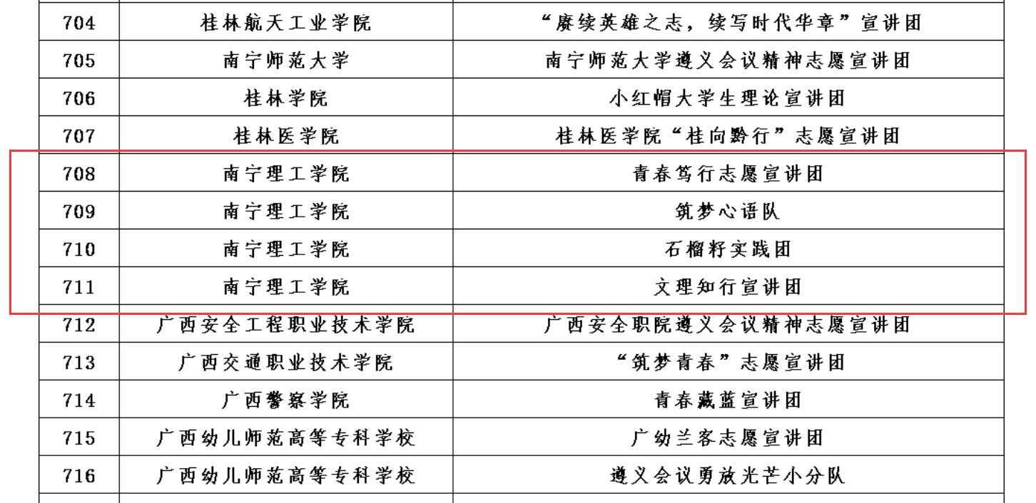全区共21支团队成功入选,我院文理知行宣讲团、青春笃行志愿宣讲团2支宣讲团队连同学校筑梦心语队、石榴籽实践团共同入选2023年全国大学生遵义会议精神志愿宣讲团。