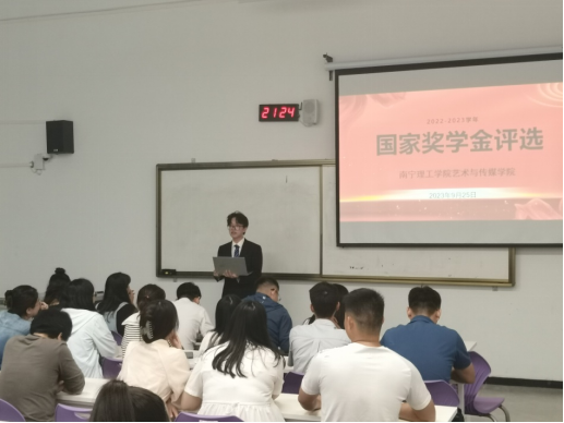 2023年9月25日,艺术与传媒学院在A3教学楼进行了2022-2023年度国家奖学金的评选工作,为了整个评选过程的公平公正公开,本次评选由艺术与传媒学院全体学工老师担任评委,并当场宣布了国家奖学金获奖名单。这一殊荣表彰了在学术、领导力和社会贡献等方面表现突出的学生,为鼓励他们在学术研究和社会服务方面不懈努力。