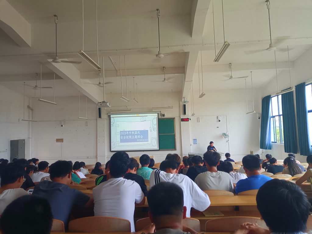 金秋时节,丹桂飘香,在中秋佳节和祖国74周年华诞到来之际。为让同学们安全离校,增强安全意识,切实保障同学们十一的假期安全,2023年9月28日,建筑学2301、工程造价2301-2302、土木工程2301-2303班在4303教室召开节前安全教育主题班会。班会由辅导员秦伟灵主持。