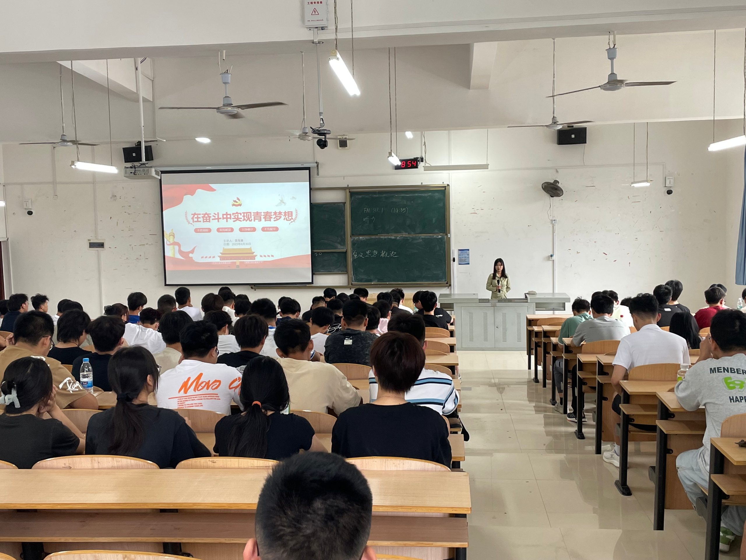 专题组老师以《在奋斗中实现青春梦想》为题,引导新生树立崇高的政治信仰和远大的人生理想,引领新生深入学习马克思主义科学理论,自觉践行社会主义核心价值观,参与构建和谐校风社风,成为时代发展的生力军。