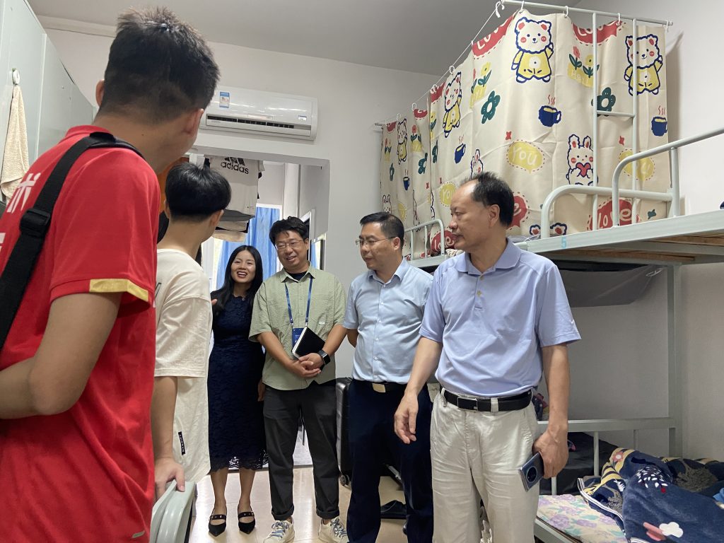 为充分了解新生入学后的日常生活以及宿舍状况,8月31日,学校董事长尹少华、学校党委书记、督导专员金飞、学生工作部处长李枚晏、土木与工程学院党总支书记秦磊、后勤保卫处副处长温怡一同前往6栋、7栋新生宿舍进行走访,引导新生尽快适应新生活、新环境。