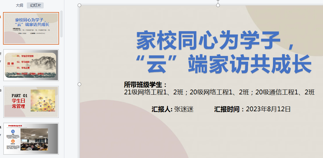 通过此次云家访活动,拉近了辅导员与家长的距离,进一步增进家长与学校的沟通,有助于辅导员更有针对性的做工作,使学生思想政治教育更贴近实际、更贴近学生。