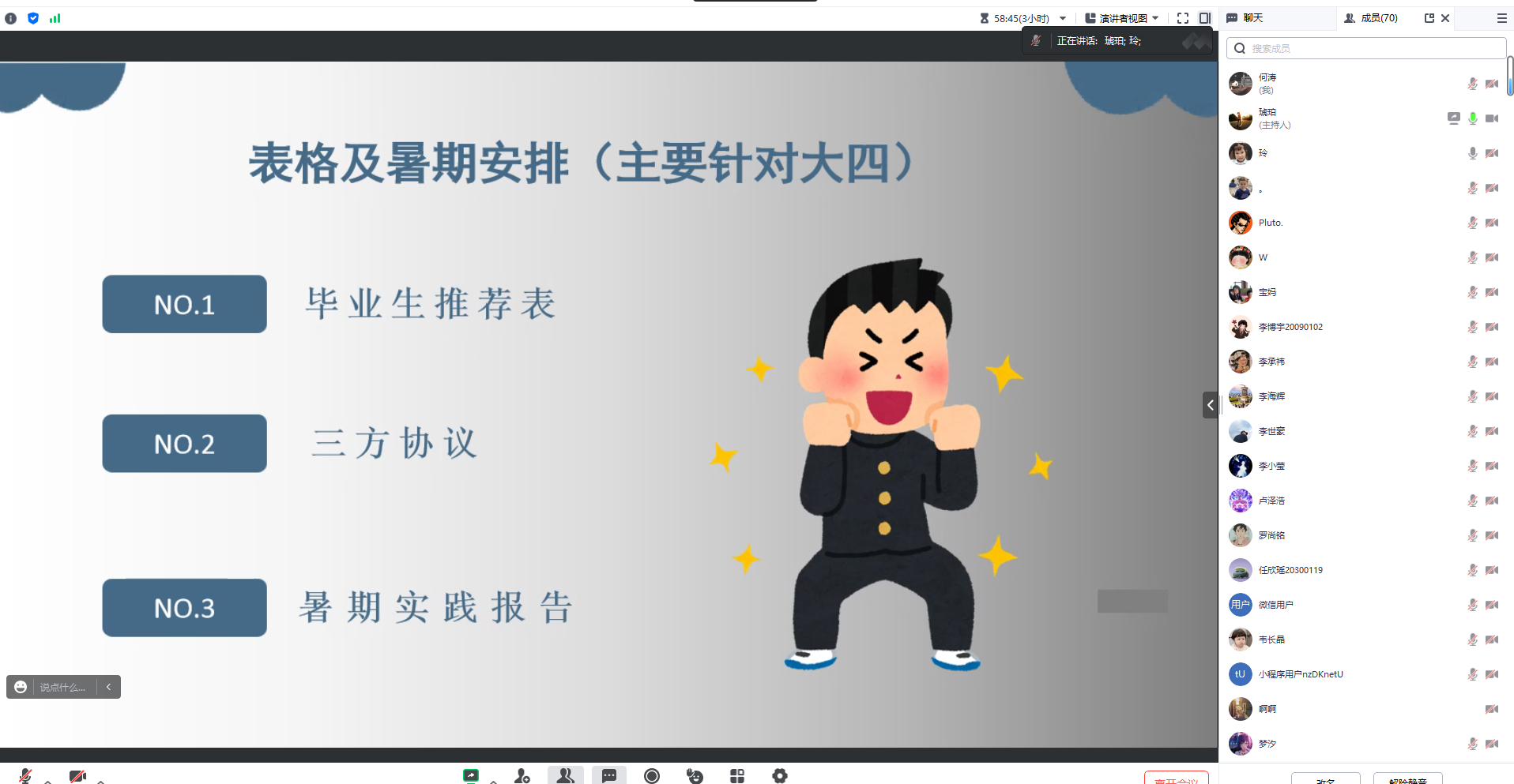 云家访活动上,各年级辅导员对假期防火、防汛、防电信诈骗、社会实践等安全事项作出重点强调,以增强家长和学生的安全防范意识。针对学业和就业问题,各年级辅导员向家长反馈学生的在校表现和学习情况,对学生的学习、考研、就业问题进行了专门的解答,并建议家长结合学生自身实际制定学业生涯规划。