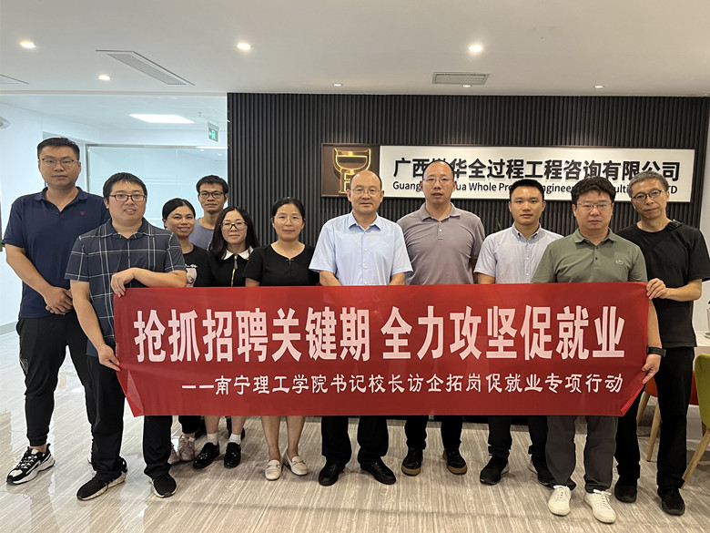 8月17日下午,南宁理工学院校长王金叶,土木与工程学院党总支书记秦磊,学院院长鲁金金,党总支书记助理王帅,建筑学教研室主任傅艺兵赴广西墩华全过程工程咨询有限公司、桂林创景建筑设计有限公司开展访企拓岗及毕业生就业推介会,了解相关产业对人才培养的需求,拓宽毕业生就业渠道和资源,校企充分交流,合作进一步深化,共同促进我校毕业生更充分更高质量就业。