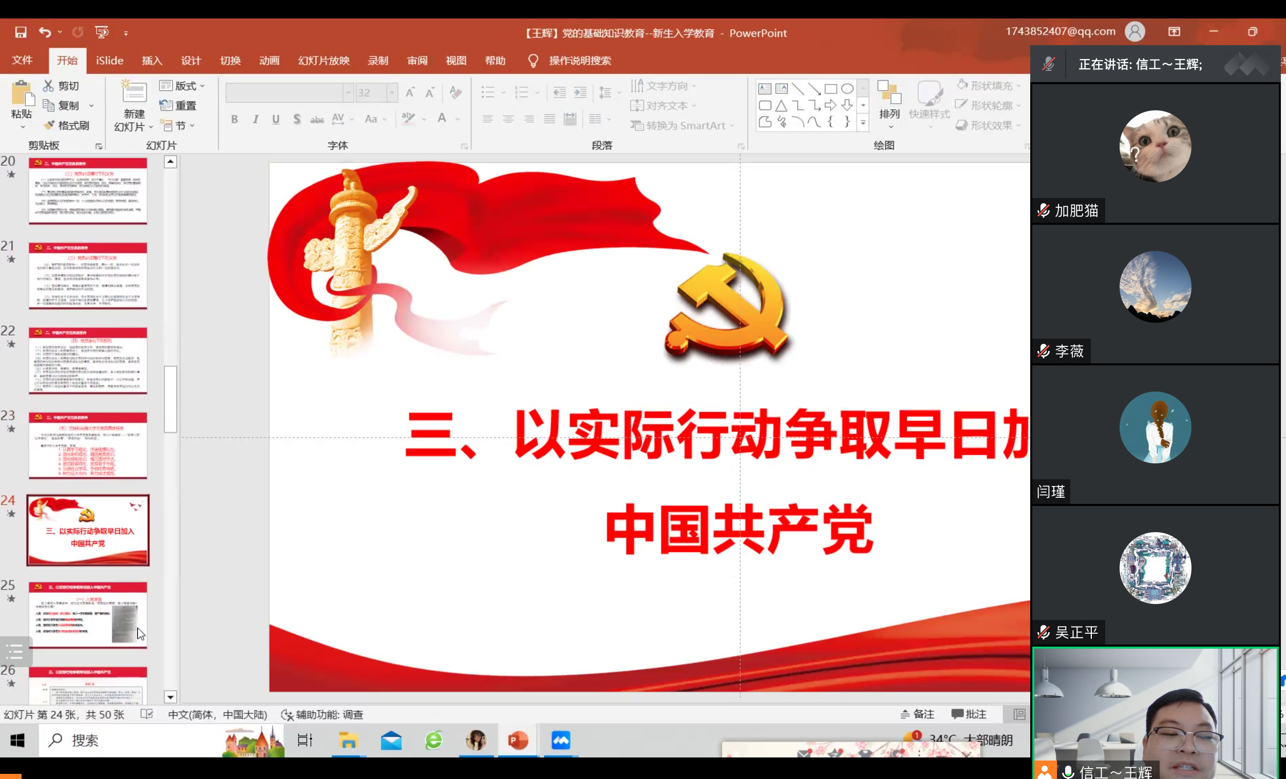 活动开始后,各组依次开展试讲,试讲内容涵盖思想政治教育、党的基本知识教育、素质提升教育、法制教育与清廉学校建设、学生手册学习、安全稳定教育、卫生健康教育七大专题;旨在引导学生坚定理想信念、明确成长方向,厚植家国情怀,增强安全意识和纪律观念,尽快融入大学的学习和生活。试讲结束后,学院党总支书记对辅导员的备课工作作出肯定,并对各专题教育的教学内容、教学过程和方法、课件制作、授课质量等方面进行点评提出改进建议。