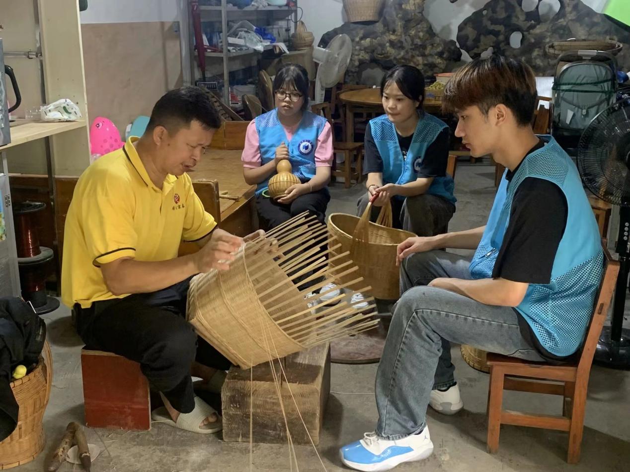 社会实践团同当地竹编传承人张华金先生进行座谈并体验竹编技艺,座谈时,张华金先生表示在保护竹编非遗文化的基础上,需要用现代化的方式进行创新与发展,才能更好地推动乡村振兴。