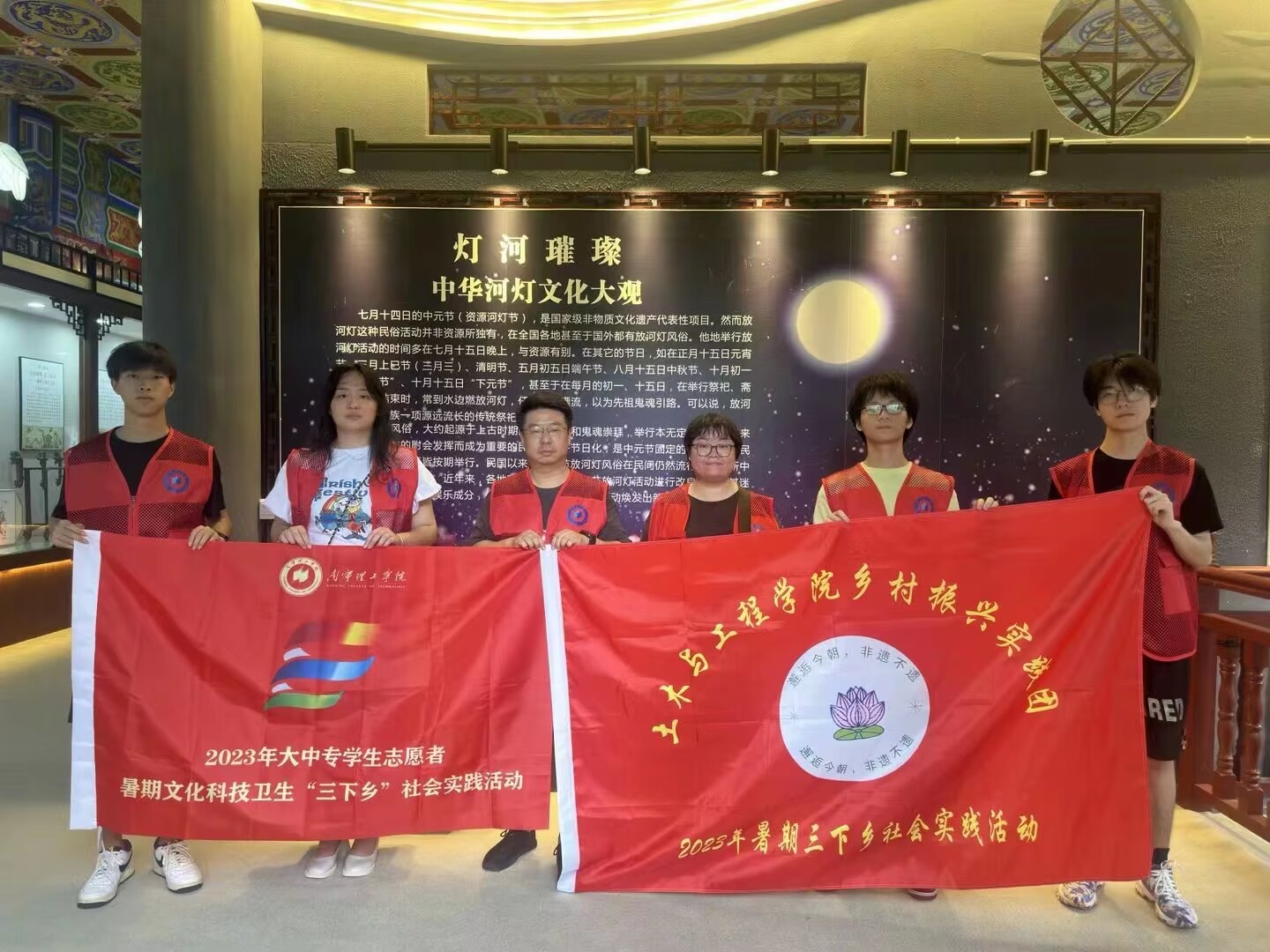 在暑期三下乡活动中,非遗不遗,邂逅今朝团队队员在指导老师的带领下于7月1日一同参观了桂林市资源县河灯展览馆,并积极走上街头进行实地采访。他们询问了当地市民群众对于非遗文化河灯节传承的看法和想法,以表达青春力量助力非遗传承的决心。