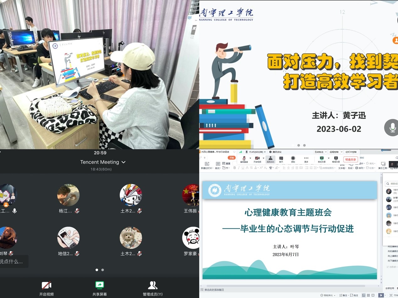 负责大四毕业班的辅导员们,则在班会上分析了当下求职就业心理状况和心理表现,通过罗翔老师的《毕业坦白局》和《就业择业视频》给学生梳理当下社会就业要求和需求,播放《我们都是追梦人》的MV,给学生减轻负面情绪,补充正向精神力量。