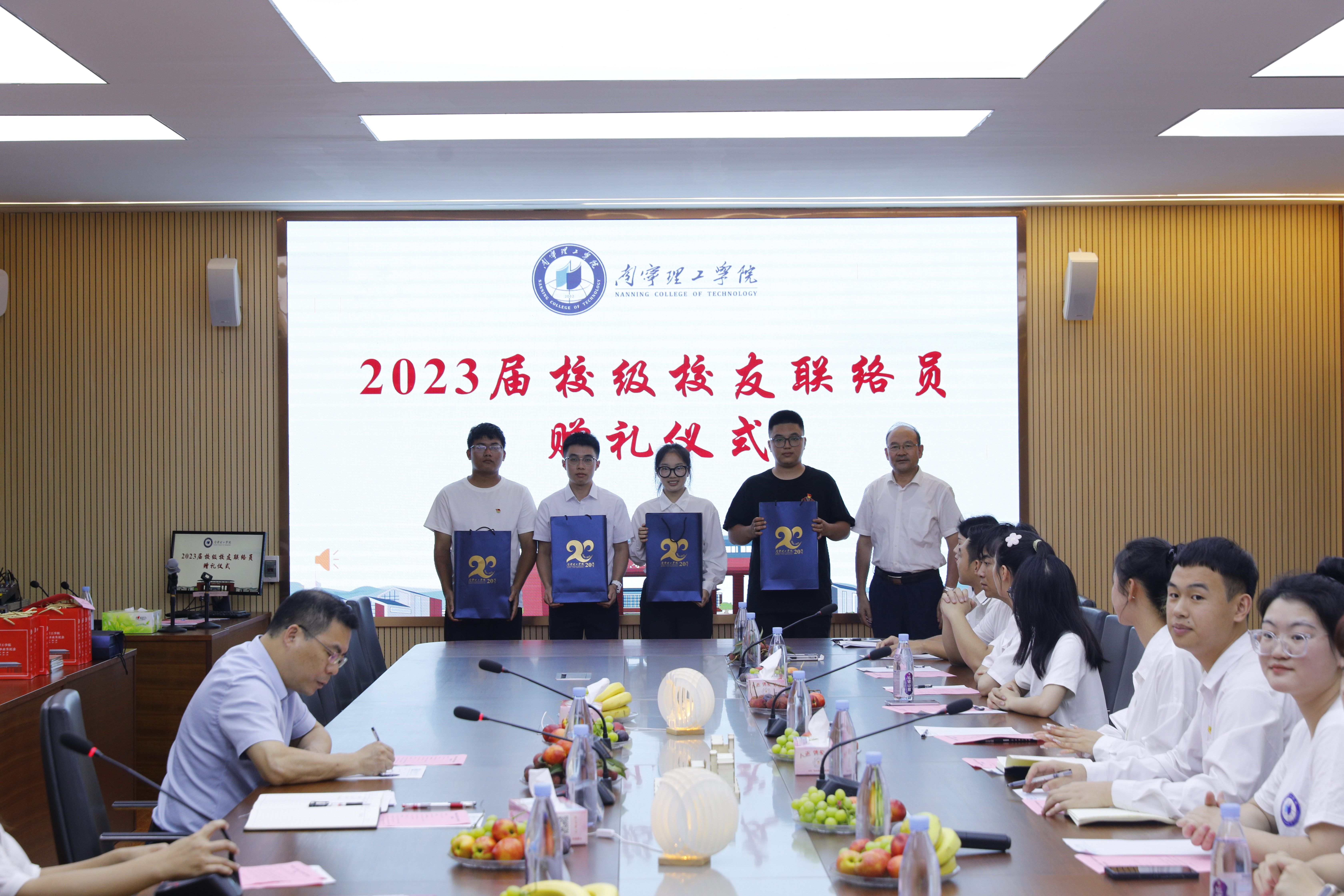 学校校长、校友总会会长王金叶向2023届校级校友联络员代表赠礼