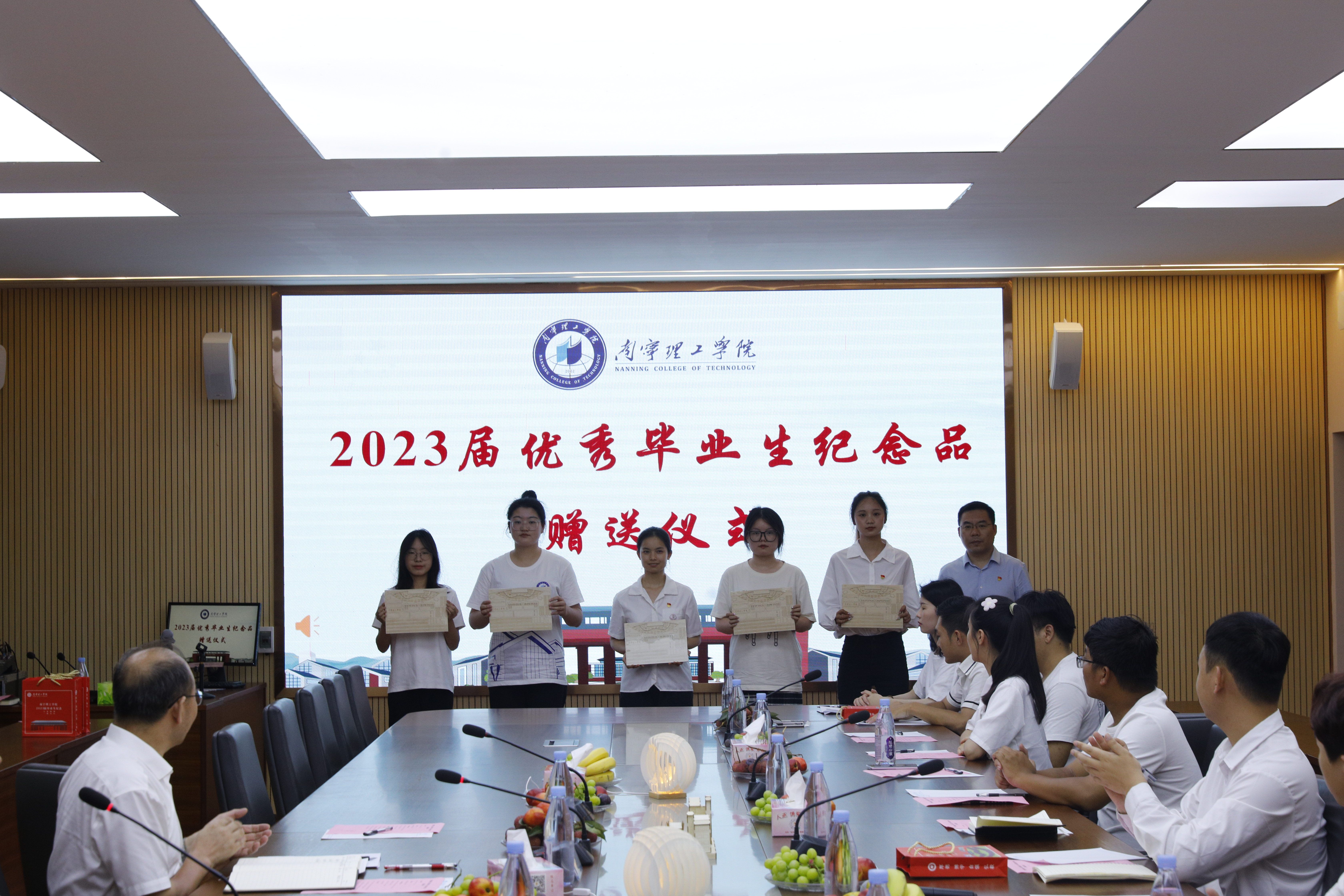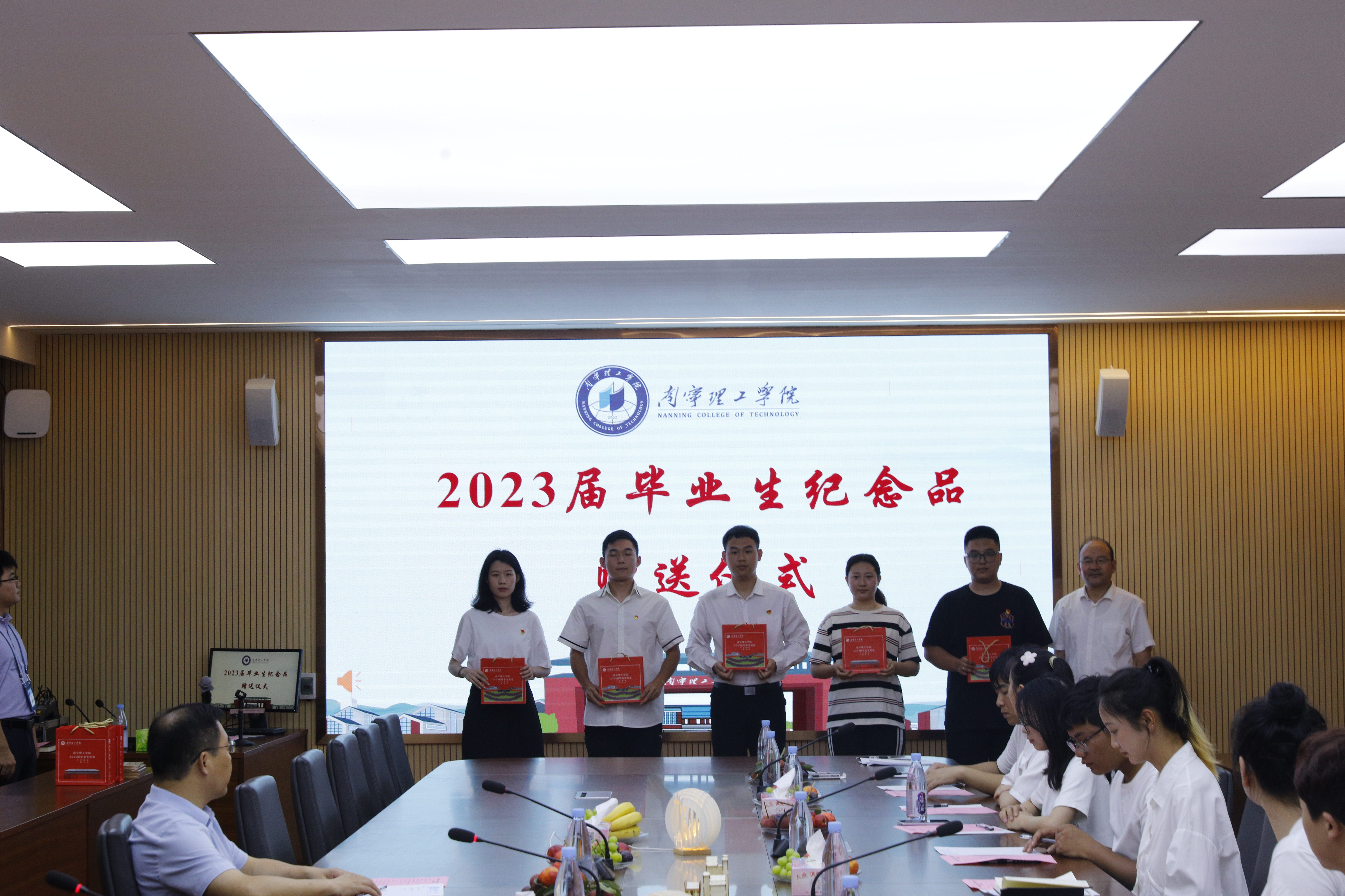 学校校长、校友总会会长王金叶向2023届毕业生代表赠礼