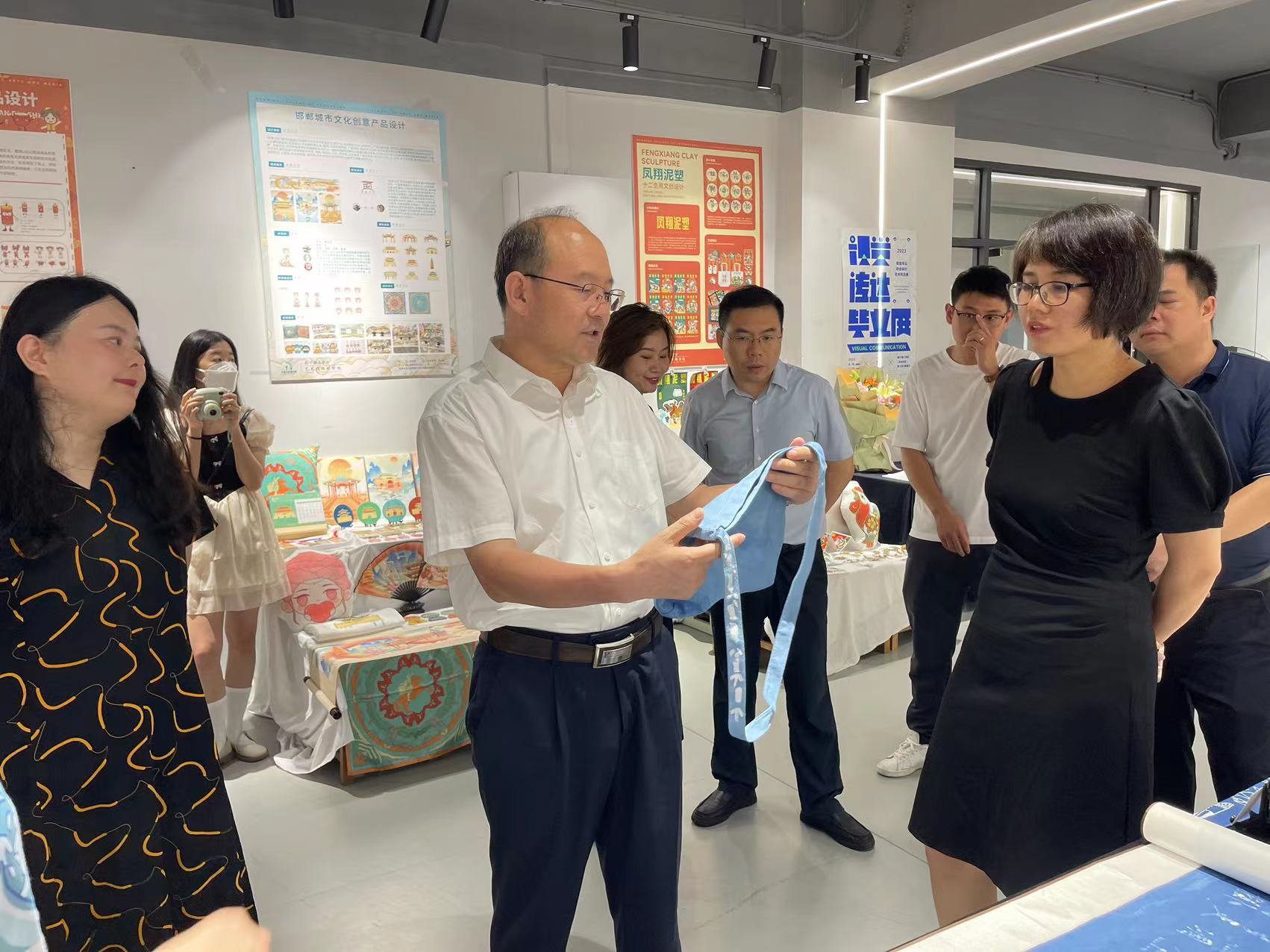 校领导一行认真观看了毕业生创作的不同主题作品,了解各类作品的设计背景、文化内涵、市场前景,对学生和指导老师的辛勤创作表示满意。校领导指出,艺术设计类专业要坚持把课程内容对接行业标准、教学过程对接生产过程,不断提高学生的实践能力和创新创业能力:要坚持开放办学,主动与地方政府、市场和企业对接,深化研究,创新发展,研发推出一批文化内涵丰富、地域特色鲜明、广受消费者欢迎的文化艺术作品,在服务地方经济社会发展中打造专业发展特色。
