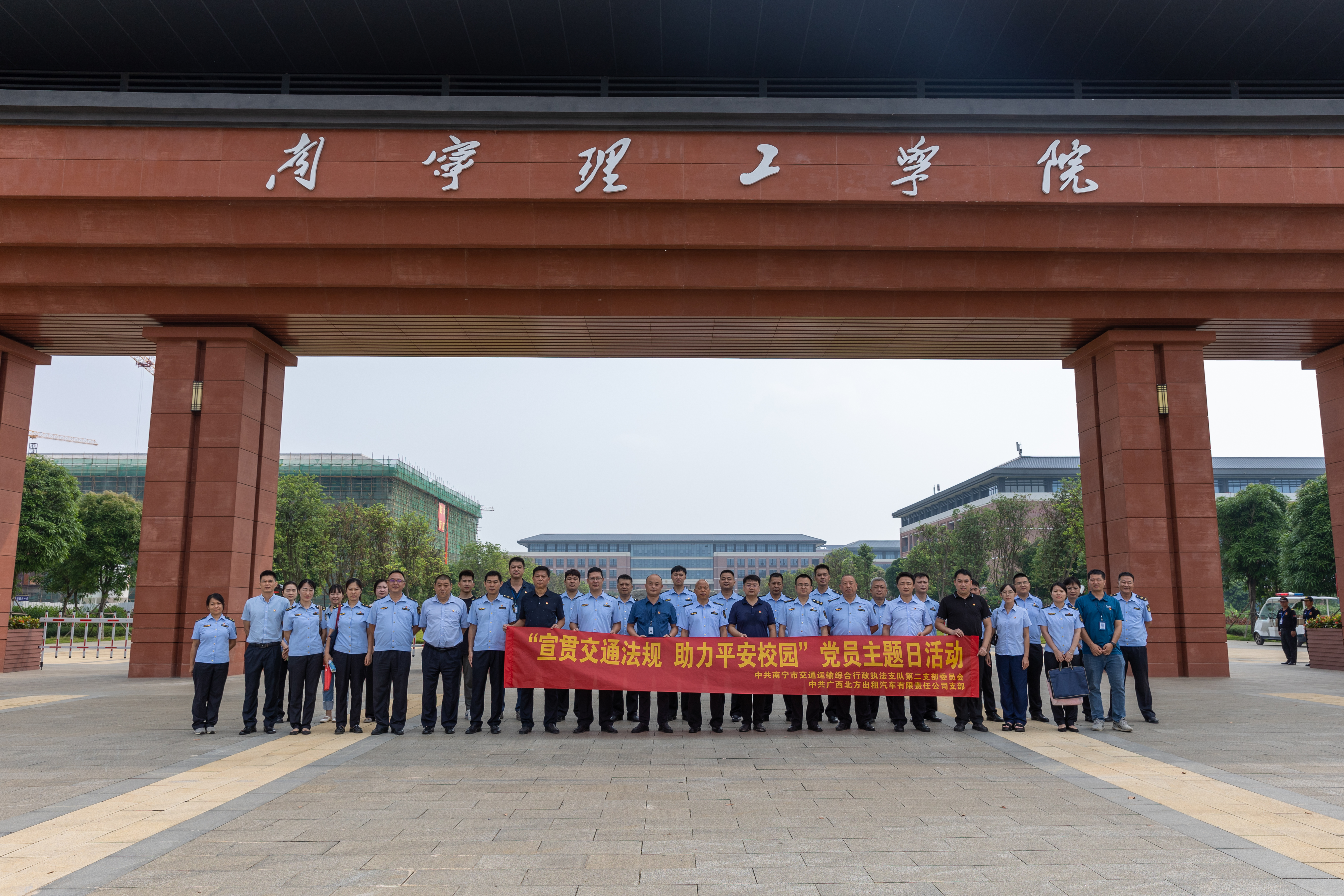 为深入贯彻落实党的二十大精神,增强党员队伍的战斗力和凝聚力,增强交通安全意识,助力平安校园建设,6月13日,中共南宁市交通运输综合行政执法支队第二支部委员会、第十支部委员会,中共广西北方出租汽车有限责任公司支部委员会,中共南宁理工学院南宁东盟校区机关支部委员会在我校南宁东盟校区联合开展“宣贯交通法规 助力平安校园”主题党日活动。