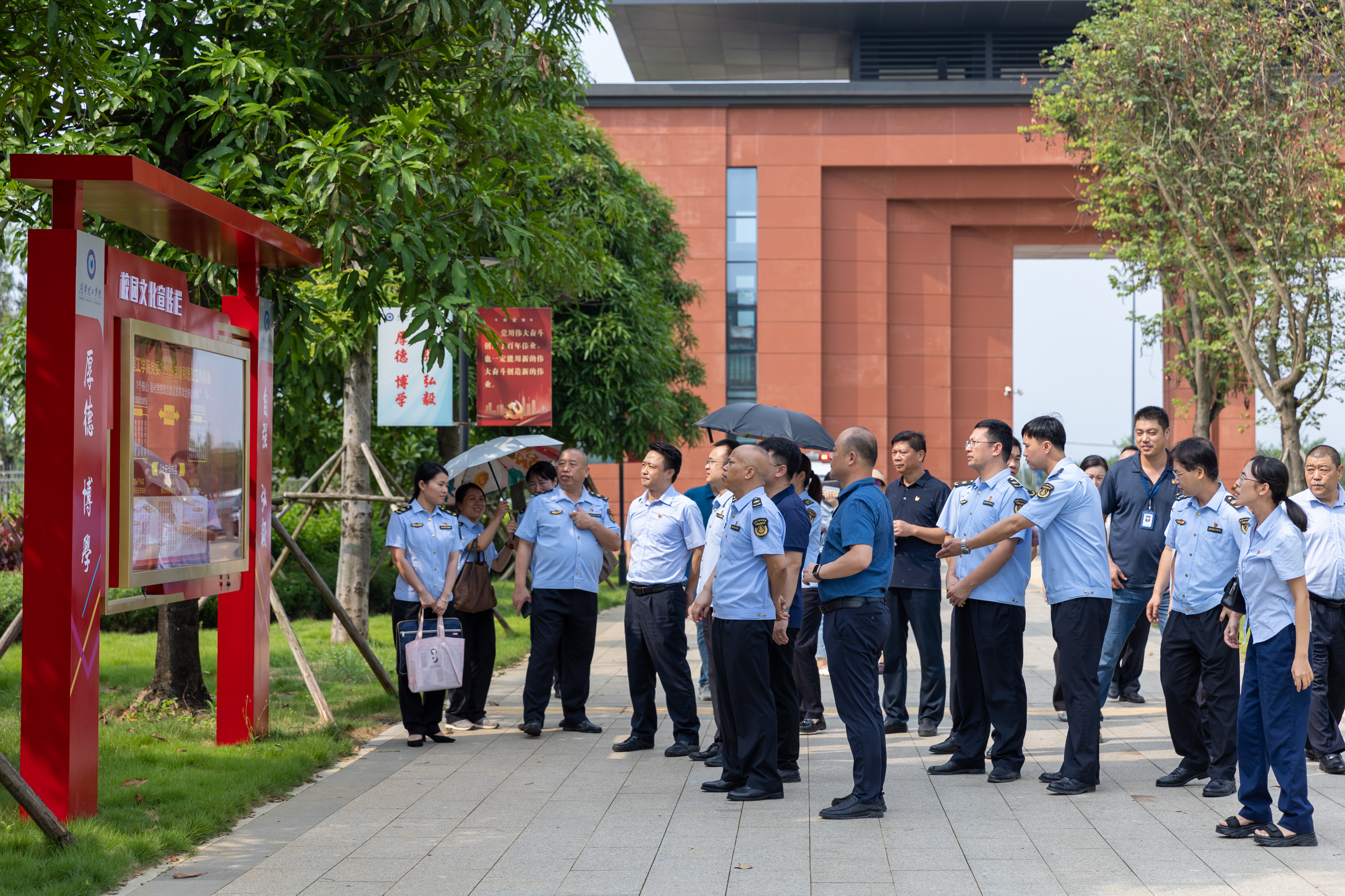 学校党委委员、纪委书记、副校长冯正垚,党委副书记、校长助理马纪涛陪同到访来宾参观校园,并介绍了学校党建文化阵地相关情况。